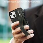 Hand Strap Kickstand Card Slot Design RFID Blocking Function PU Leather Coated TPU Phone Case for iPhone 13 mini 5.4 inch