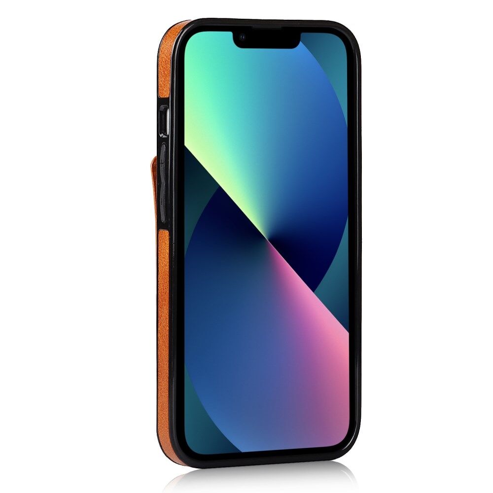 Hand Strap Kickstand Card Slot Design RFID Blocking Function PU Leather Coated TPU Phone Case for iPhone 13 mini 5.4 inch - Khaki