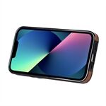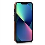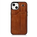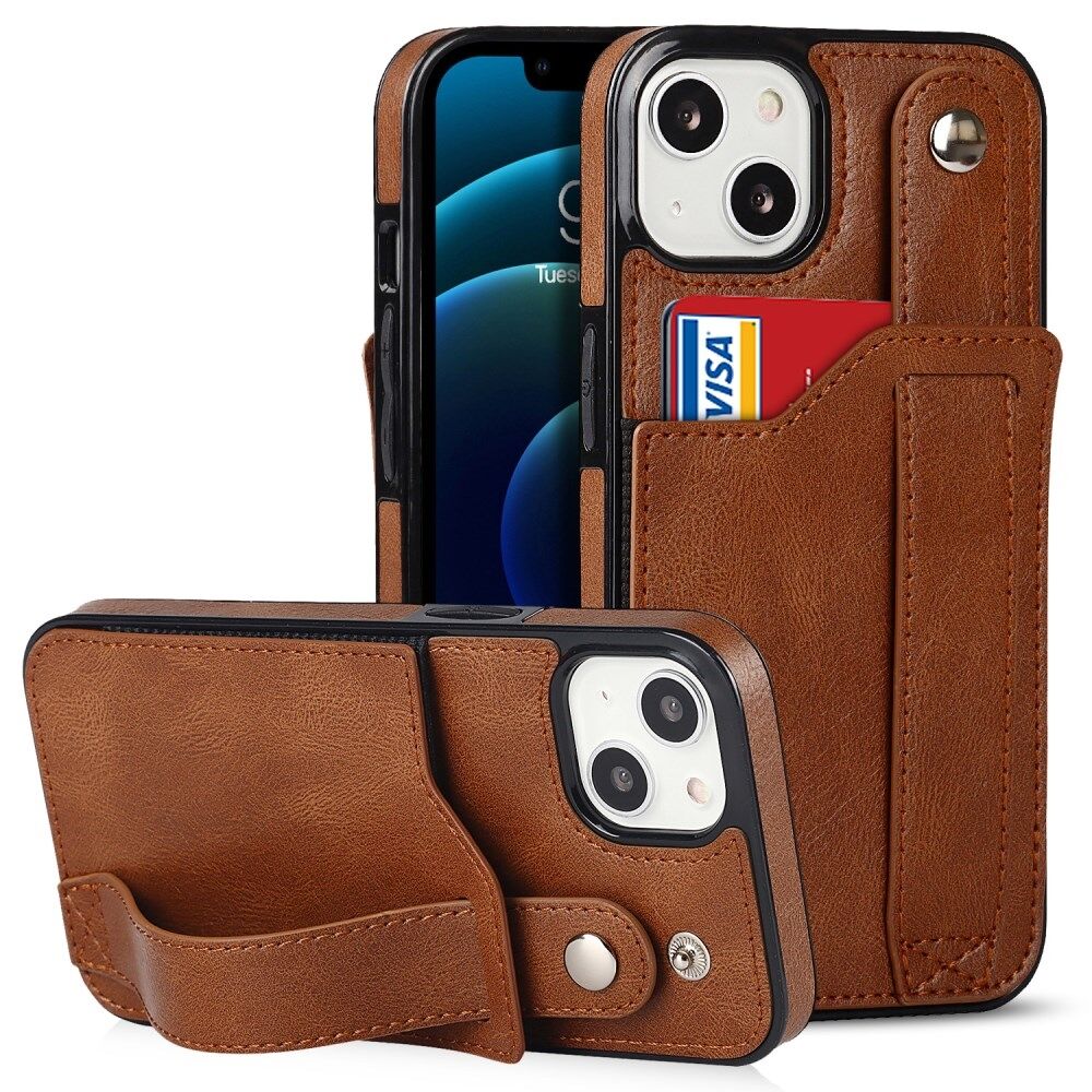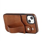 Hand Strap Kickstand Card Slot Design RFID Blocking Function PU Leather Coated TPU Phone Case for iPhone 13 mini 5.4 inch - Brown