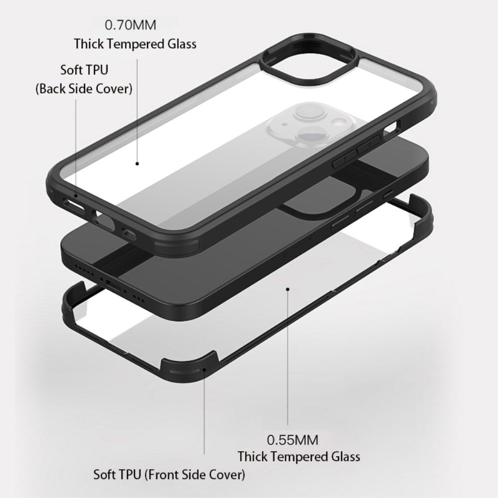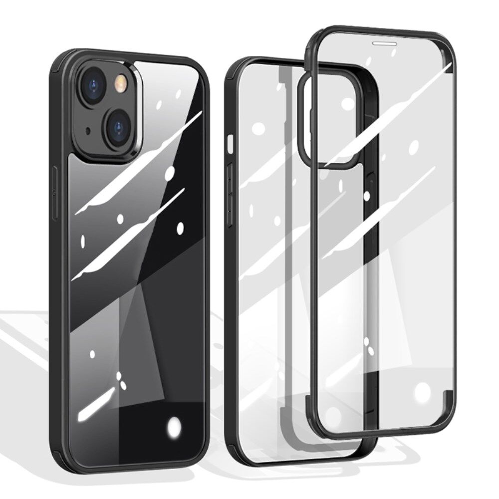 Hard Double-sided Tempered Glass Phone Case Full Protection Phone Covering with TPU Edge for iPhone 13 mini 5.4 inch - Black