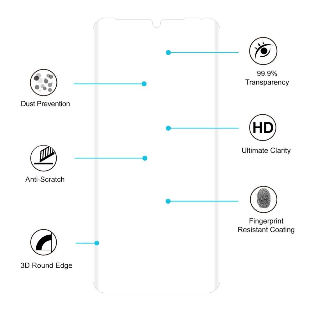 HAT PRINCE for Huawei P30 Pro 3D Full Screen Covering Hot Bending Edge Glue Tempered Glass Protector 0.26mm - Transparent