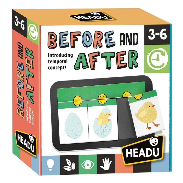 Put things in chronological order… if you get it right, you'll put a smile on all faces! Then there is the fun lotto game and stories to be made up with your friends. Contents: 1 shelf, 27 sequence cards, 9 control cards. Includes clear manual in the following languages: English, Italian, French, Spanish, German and Portuguese. NB! The article does not contain a Dutch manual.