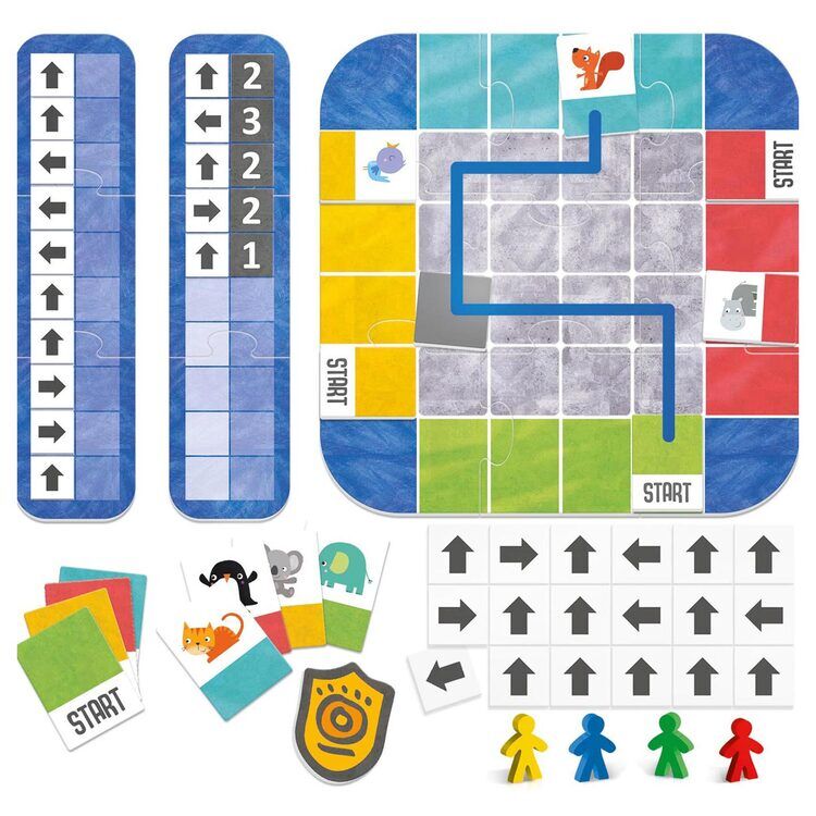 Your mission is to help the animals, but can you program the right actions? A fun game that introduces young children to coding, encouraging them to solve problems effectively with the tools available. Contents: game board, 2 programming cards, 60 code cards, 12 mission cards, 4 start cards, 5 place makers, 4 pass cards and 8 cockades. Including clear manual in the following languages: English, Italian, French, Spanish, German and Portuguese. NB! The article does not contain a Dutch manual.
