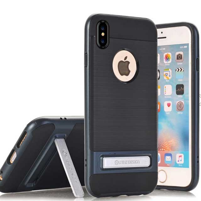 High Fashion Stander Cover in TPU for iPhone X / iPhone Xs - Dark Blue