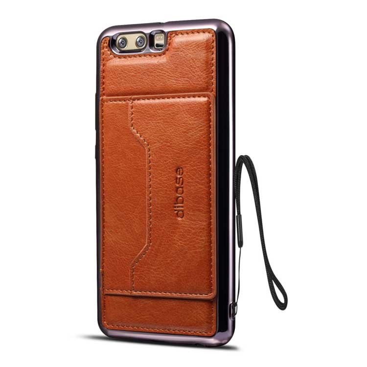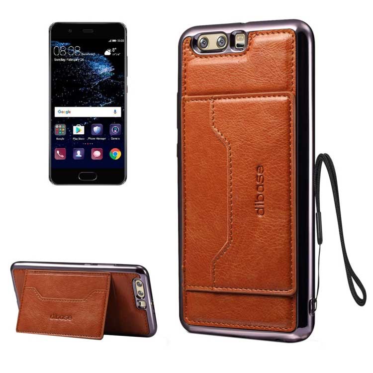 High Trend Cover in PU Leather and TPU Plastic w / Card Holder for Huawei P10 - Brown
