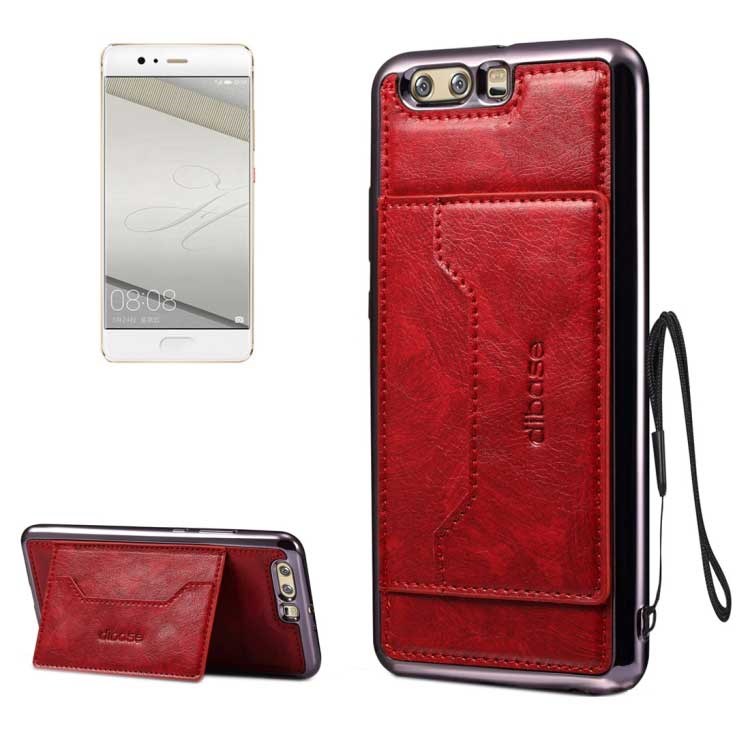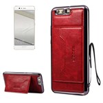 High Trend Cover in PU Leather and TPU Plastic w / Card Holder for Huawei P10 Plus - Red