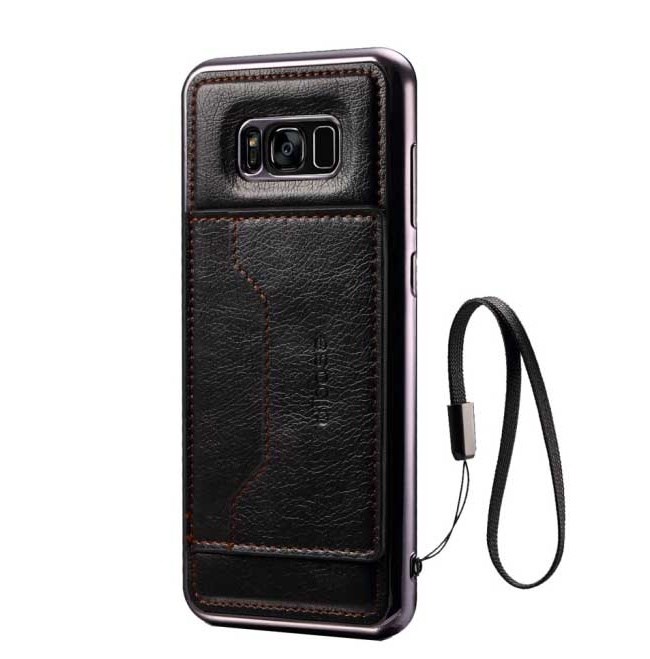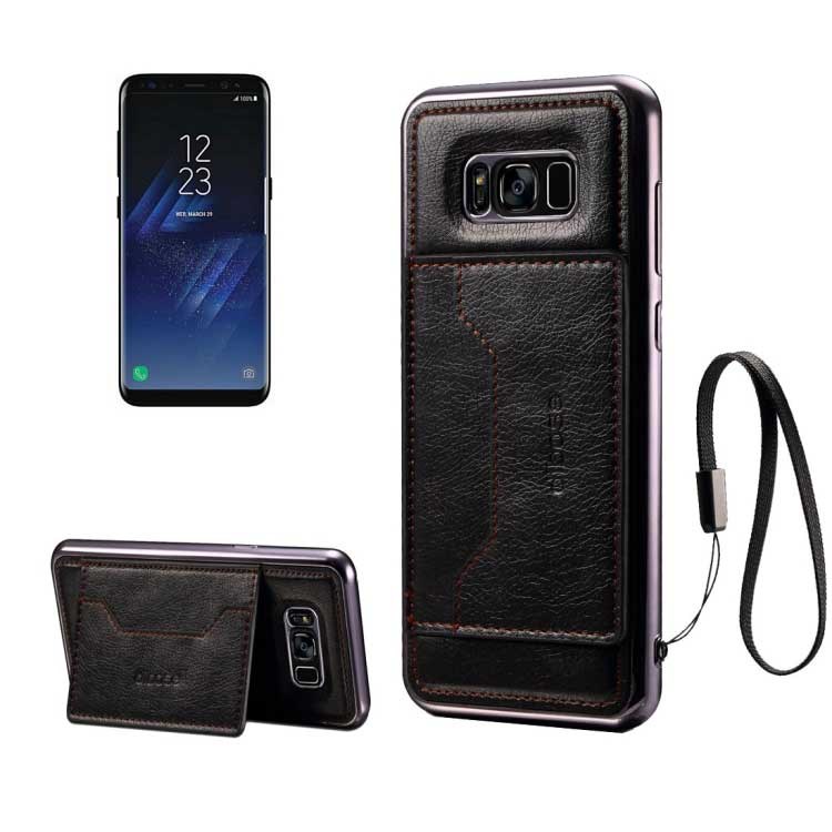 High Trend Cover in PU Leather and TPU Plastic w / Card Holder for Samsung Galaxy S8 - Black