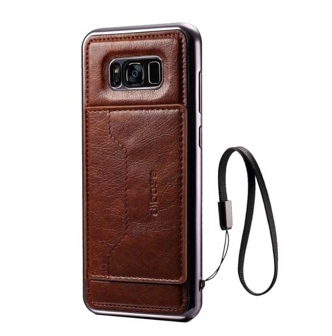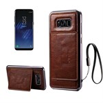 High Trend Cover in PU Leather and TPU Plastic w / Card Holder for Samsung Galaxy S8 - Coffee
