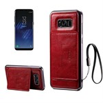 High Trend Cover in PU Leather and TPU Plastic w / Card Holder for Samsung Galaxy S8 - Red