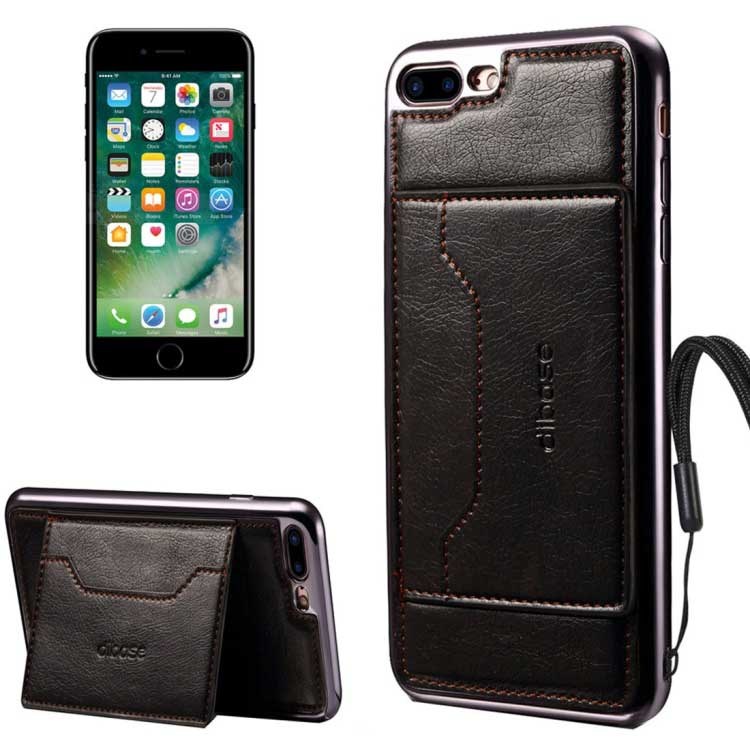High Trend Cover in PU Leather and TPU Plastic w / Card Holder for iPhone 7 Plus / iPhone 8 Plus - Black