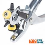 The hollow pliers can also easily attach laces and rivets with the included tool.