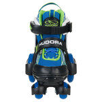 The HUDORA 'My First Quad' roller skates for the first driving pleasure on eight wheels. These roller skates are specially made for small users. The skates have a nylon reinforced chassis, molded PU wheels, push-lock buckles and integrated stopper on both shoes. This roller skate is adjustable in size and grows up to 4 sizes (26 - 29) with your child. The extra large rear wheels make the shoe a real eye-catcher. The liner can be removed and cleaned. The shoes are suitable for children up to 20 kg.