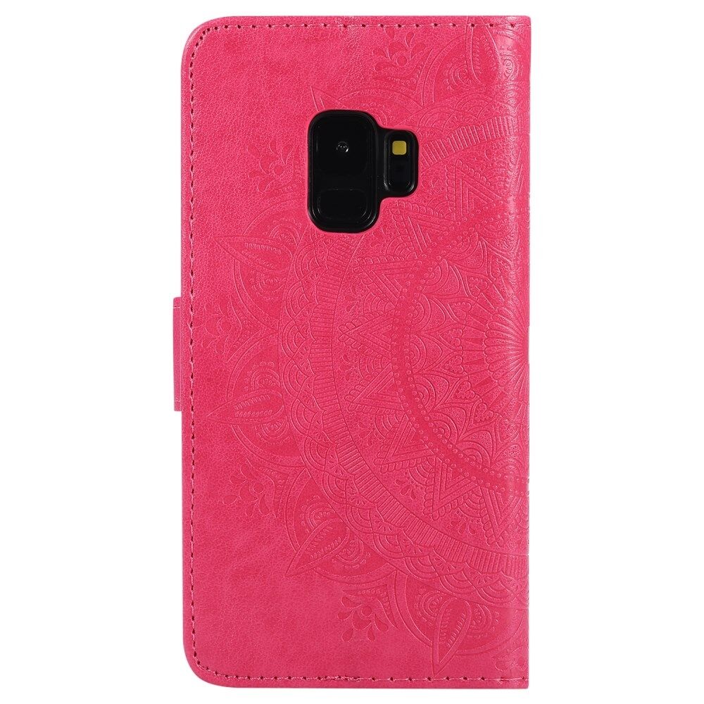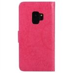Imprint Butterfly Flower Leather Wallet Cover for Samsung Galaxy S9 SM-G960 - Rose