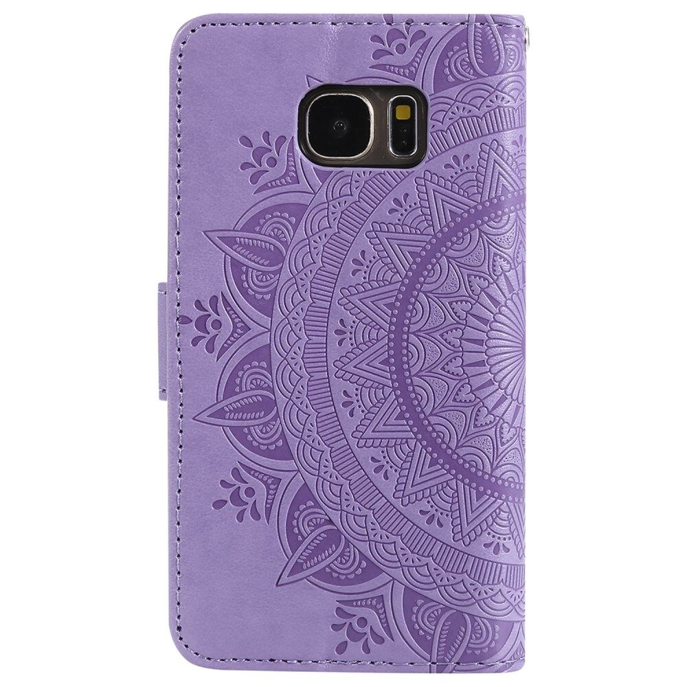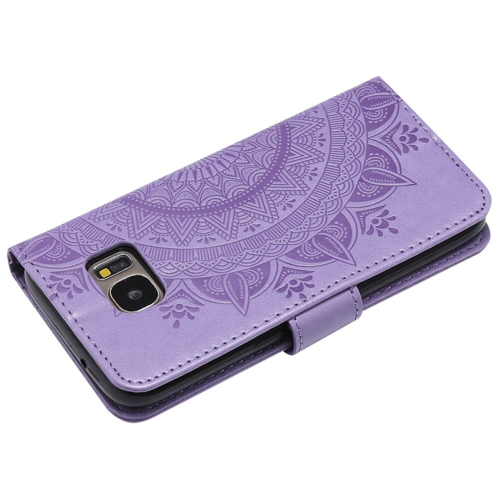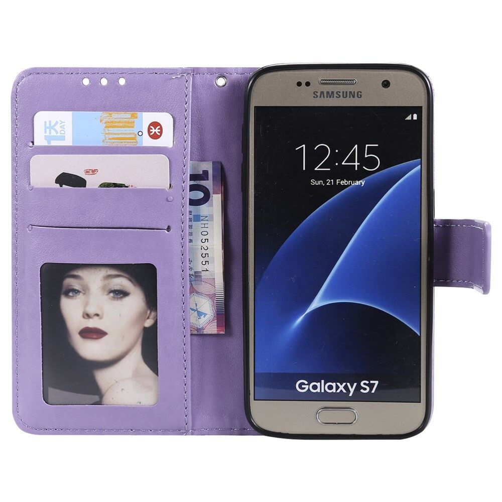 Imprint Flower Magnetic Leather Stand Case for Samsung Galaxy S7 SM-G930 - Purple
