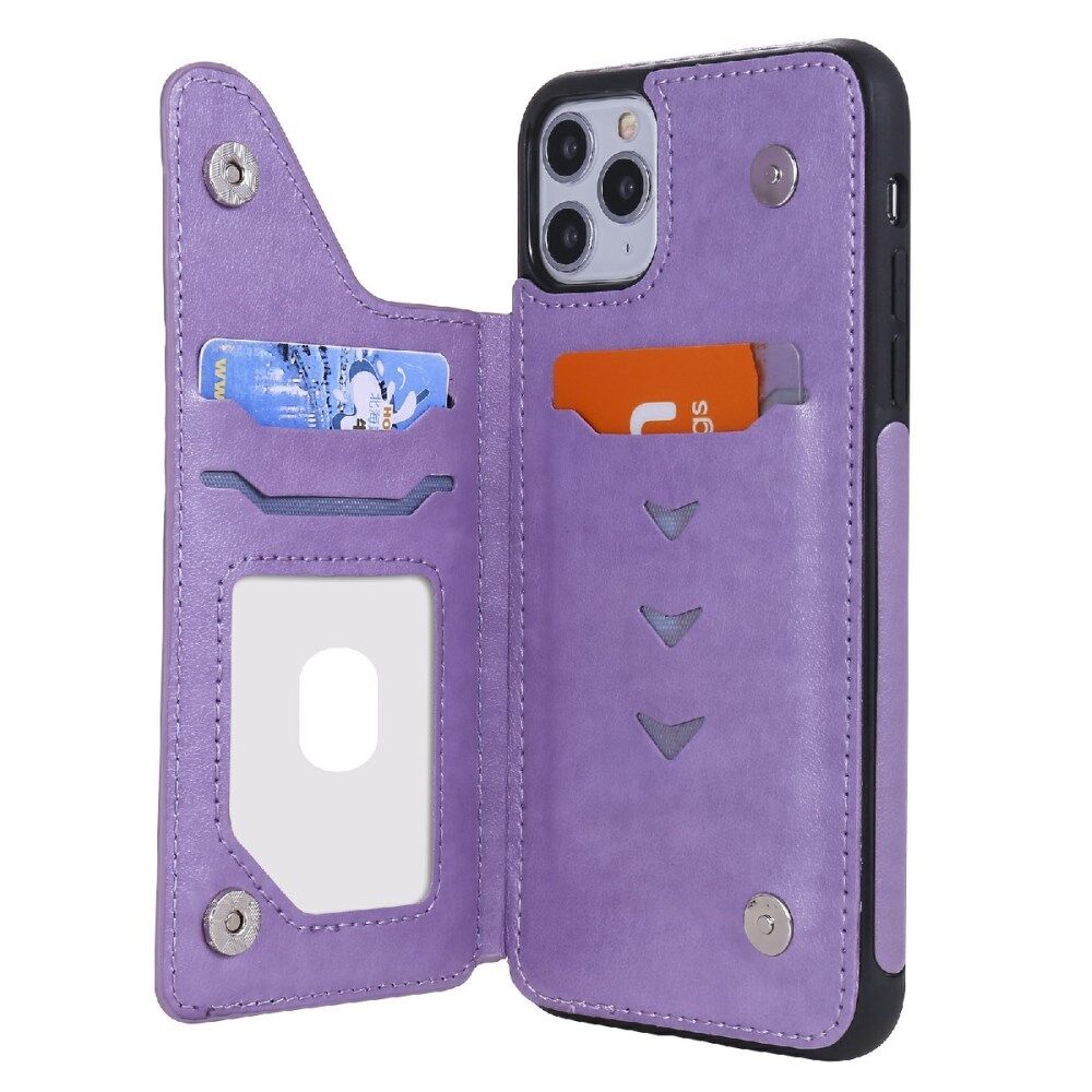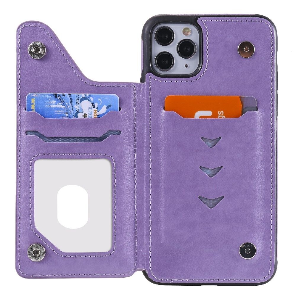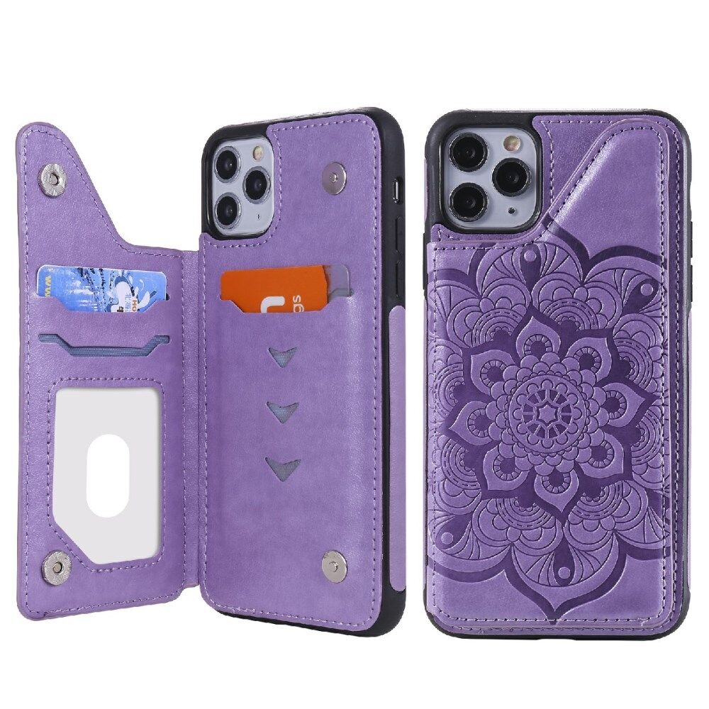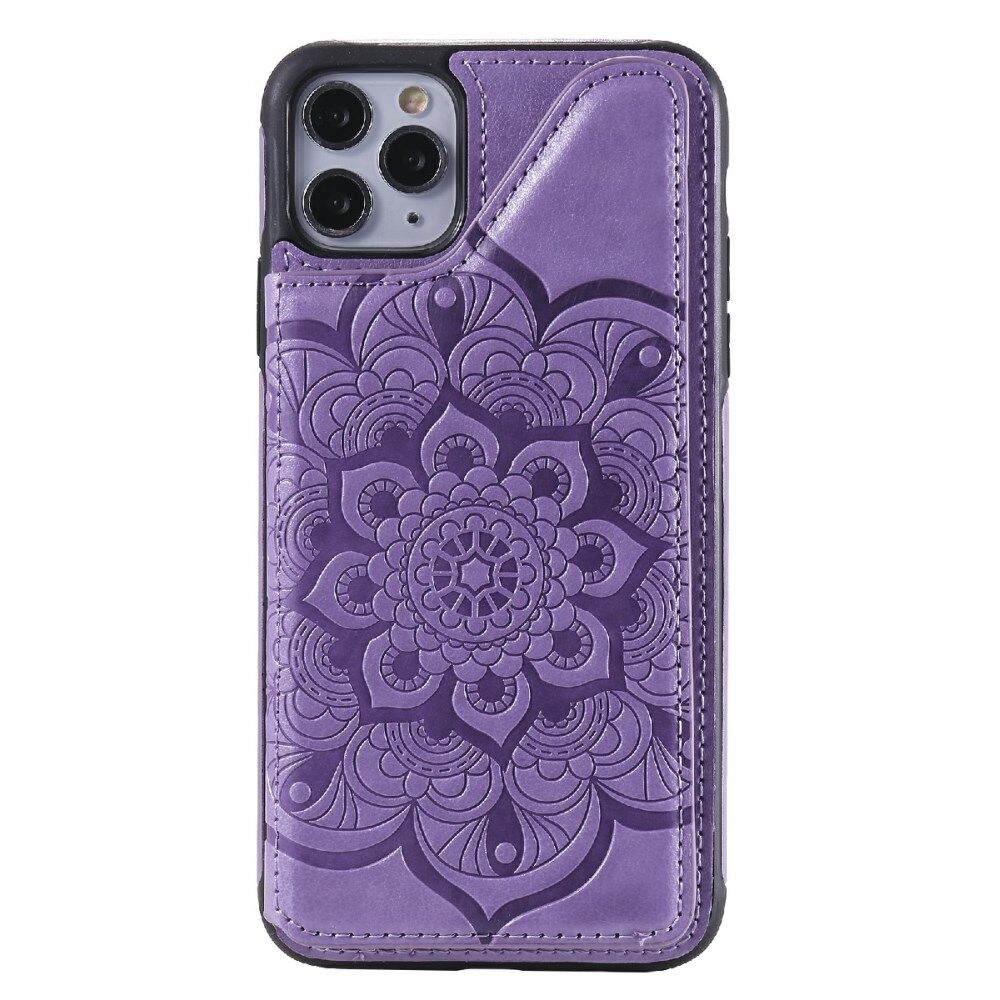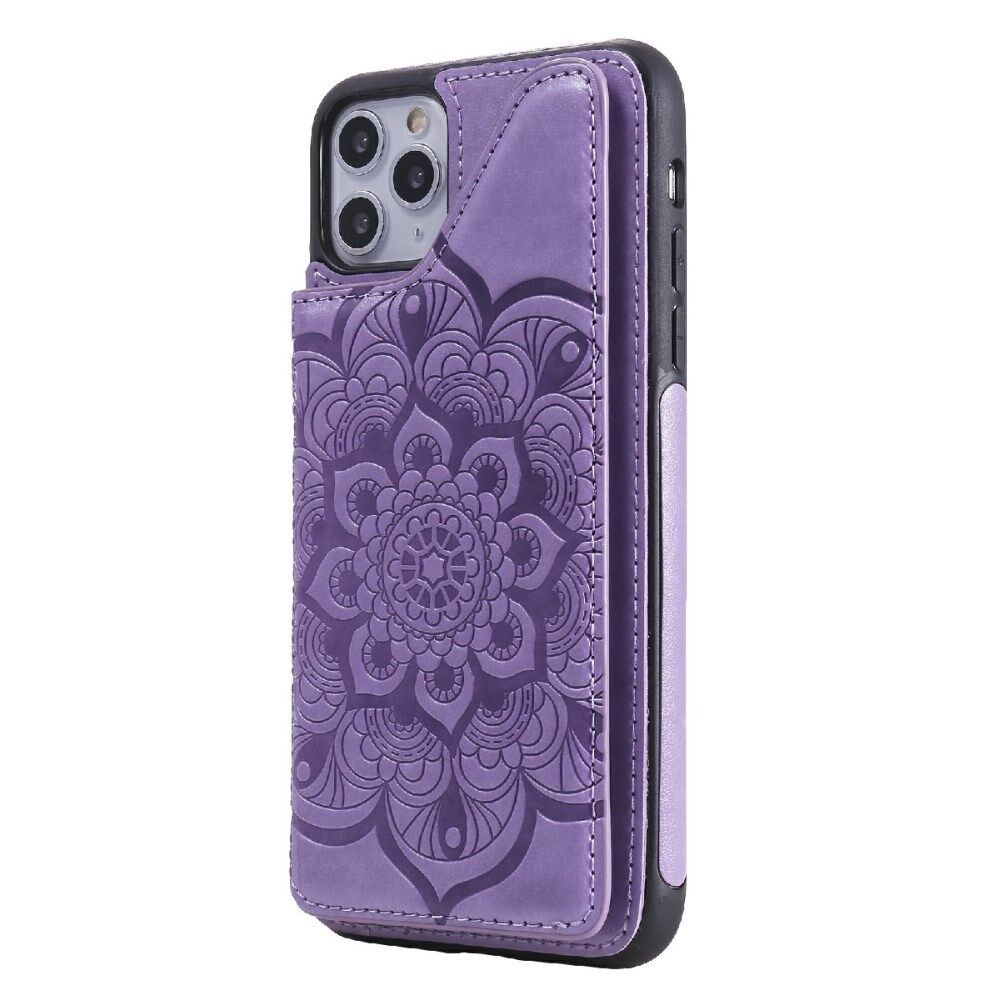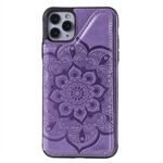 Imprint Flower PU Leather+TPU Shockproof Case for iPhone 11 Pro Max Card Holder Cover - Purple