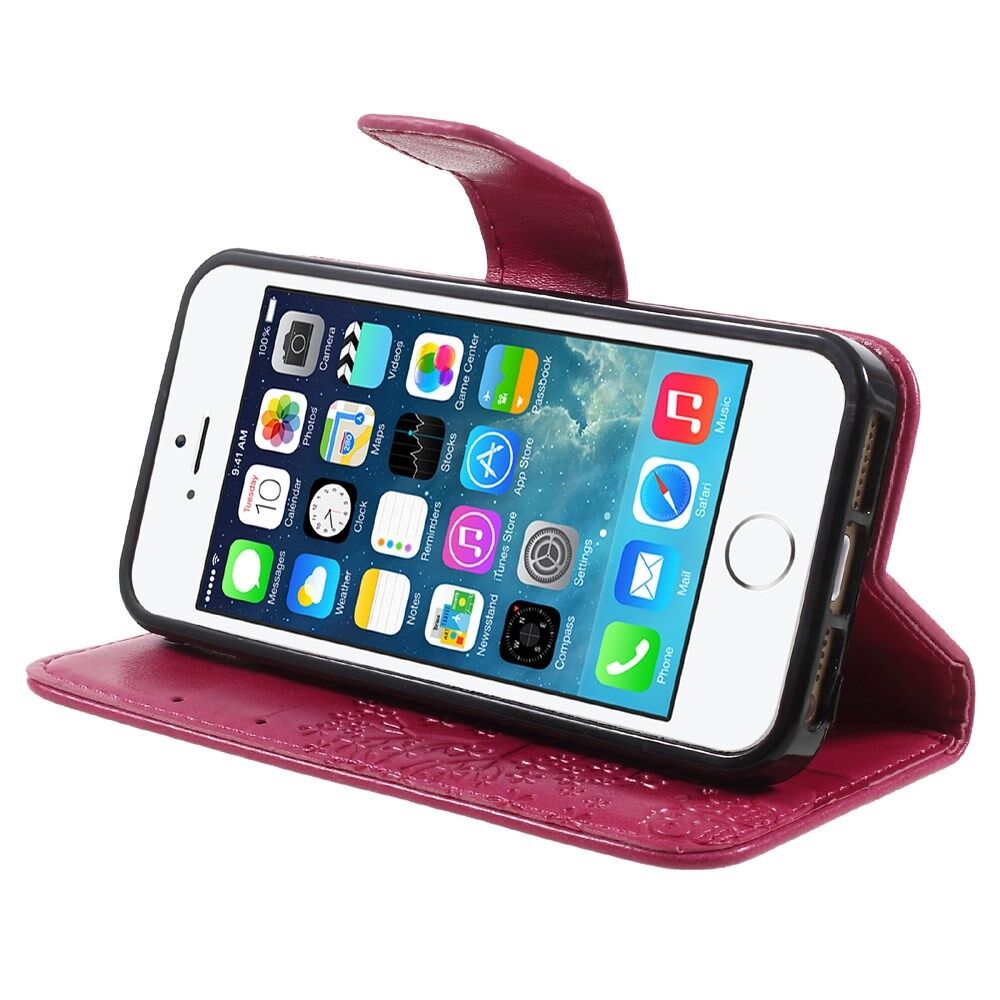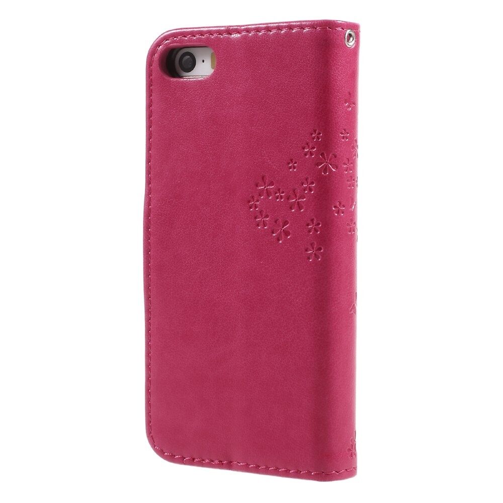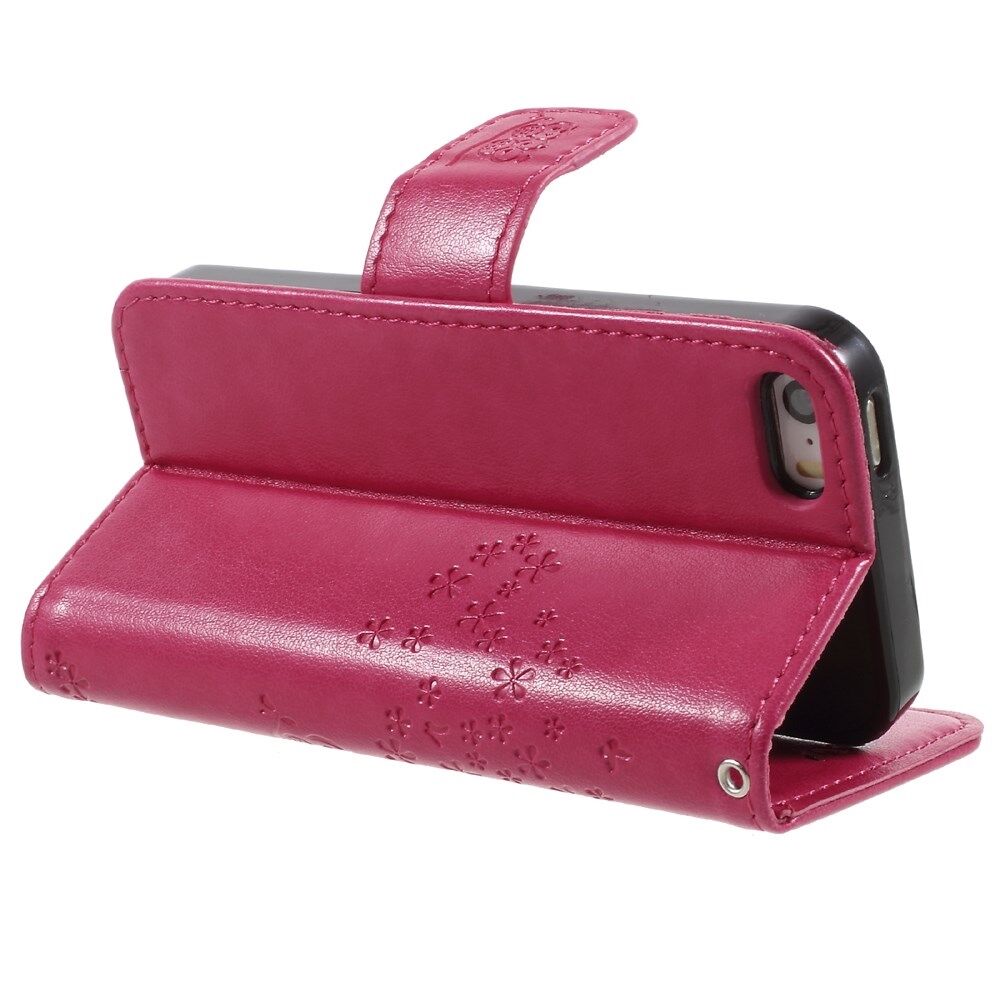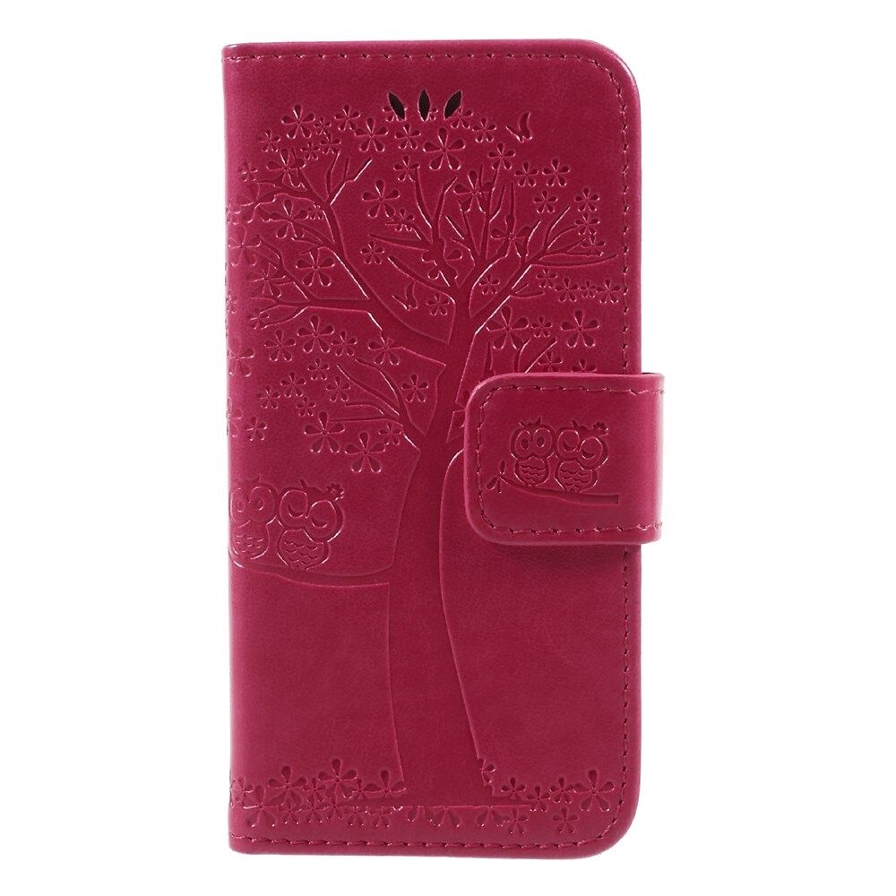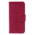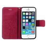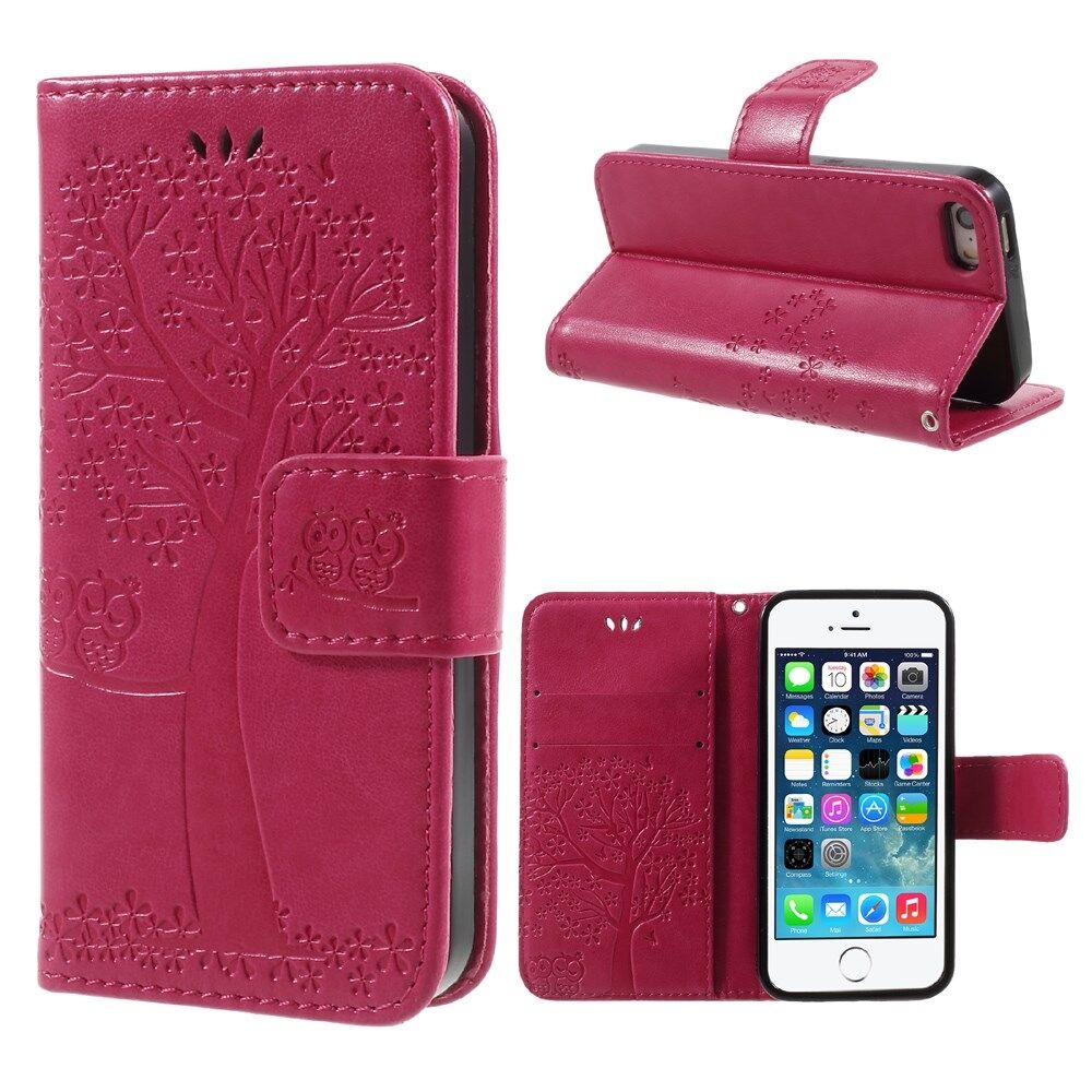Imprint Tree Owl Magnetic Wallet PU Leather Stand Cover for iPhone 5 / 5s / SE - Rose