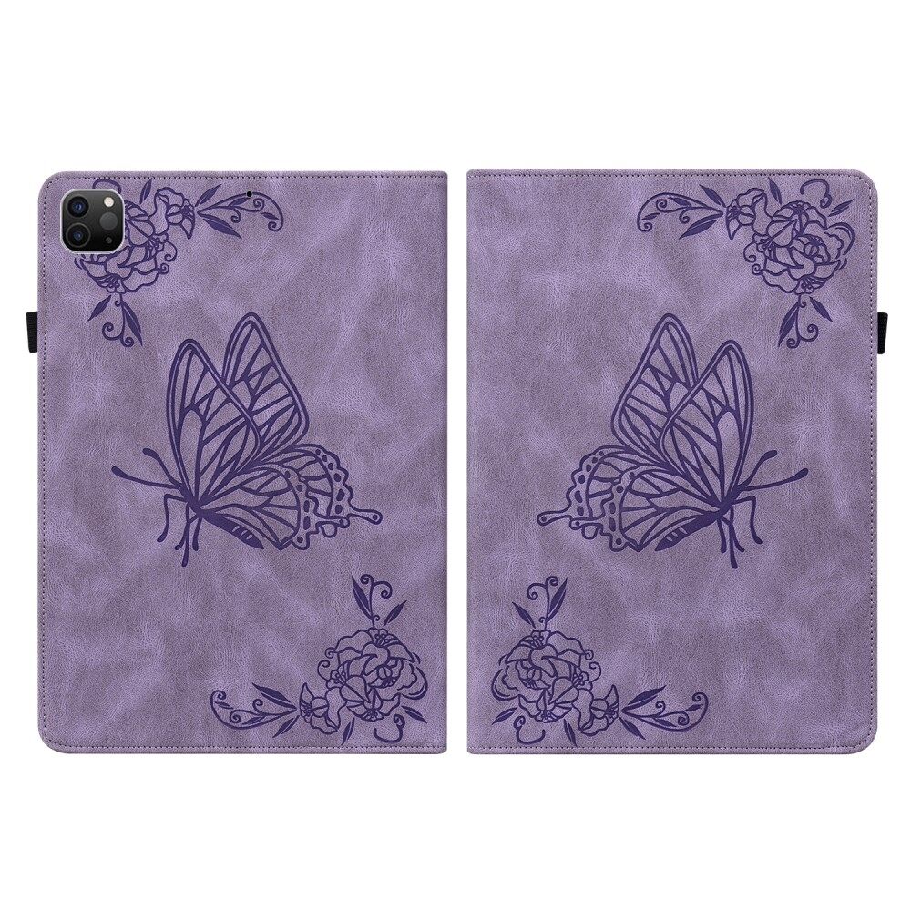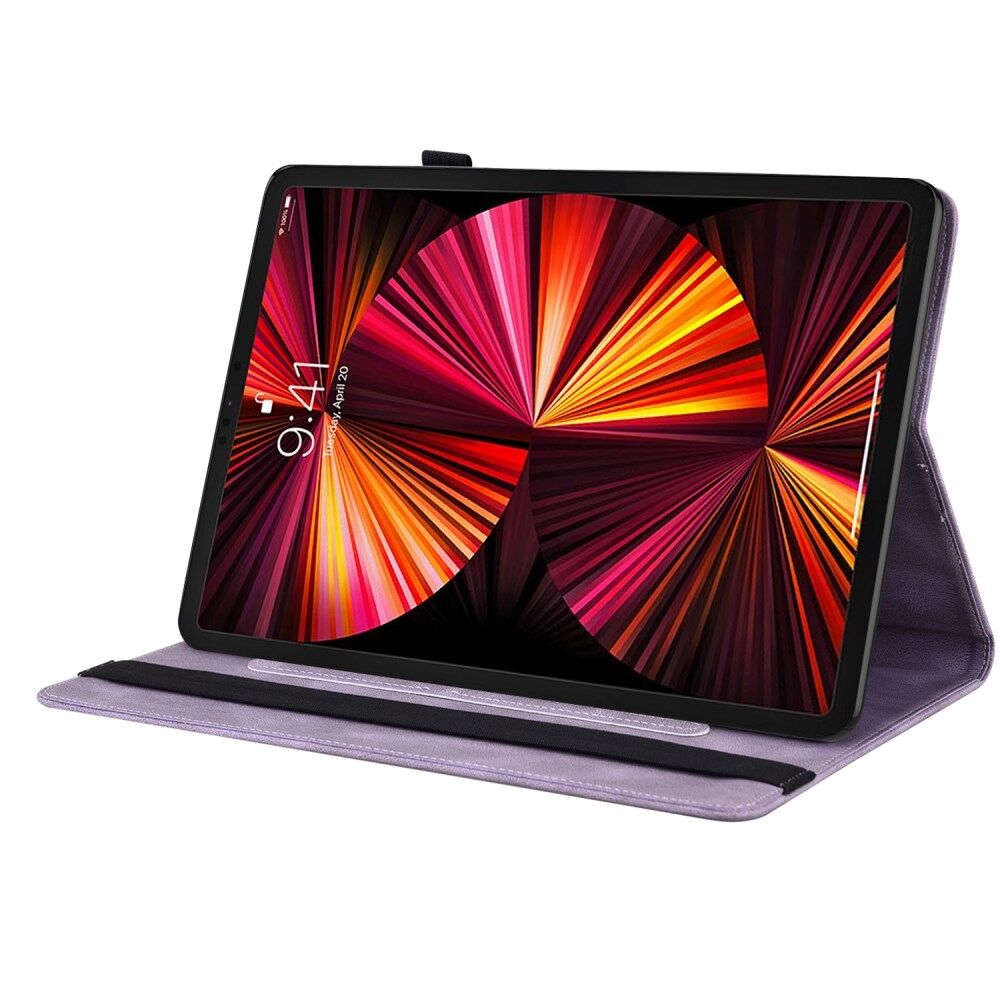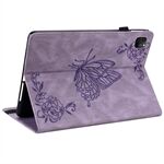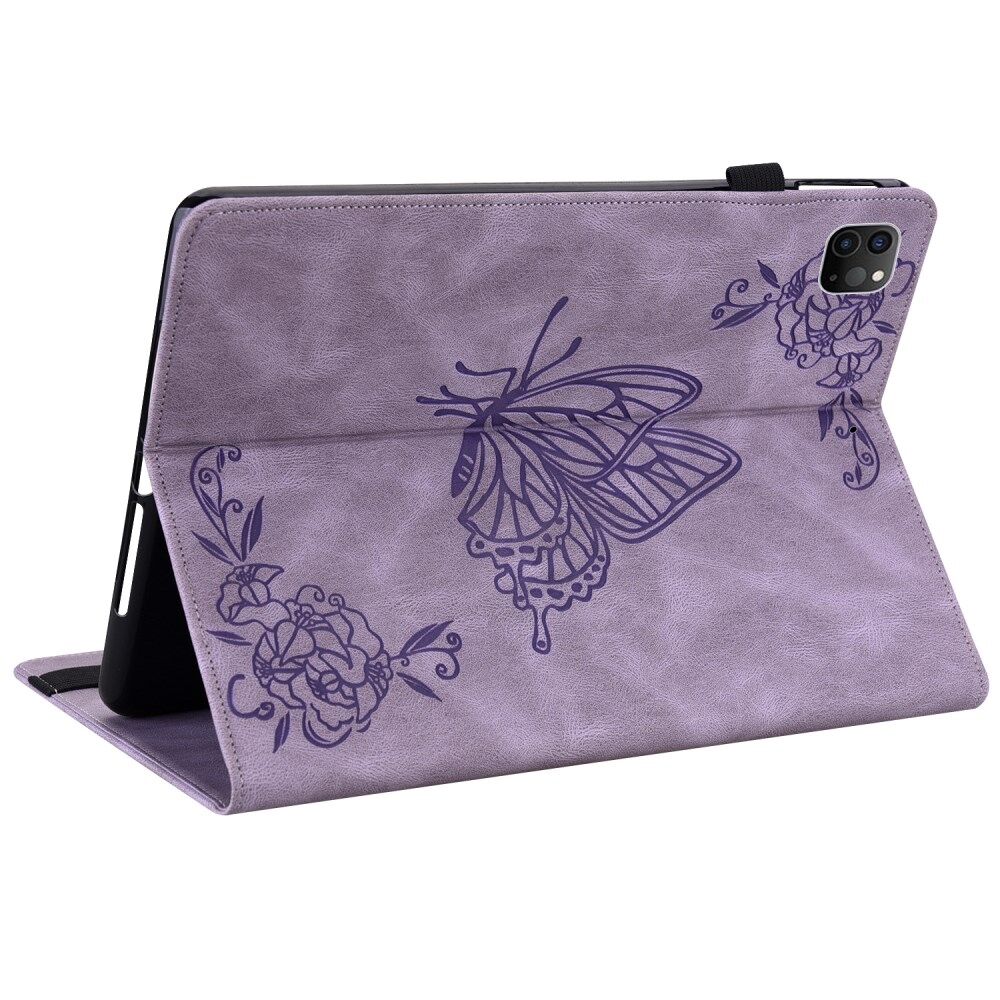 Imprinted Butterfly Flower Card Slots Folio Stand Cover Tablet Leather Case with Elastic Band for iPad Air (2020) / Pro 11-inch (2021) - Purple