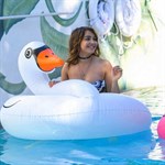 Super fun bathing animal shaped like a giant white swan.