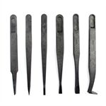• 6-in-1 tweezers set: Micro point tweezers, Long tip tweezers, Flat tweezers, Medium tip tweezers, Broad tip tweezers, Curved tweezers
