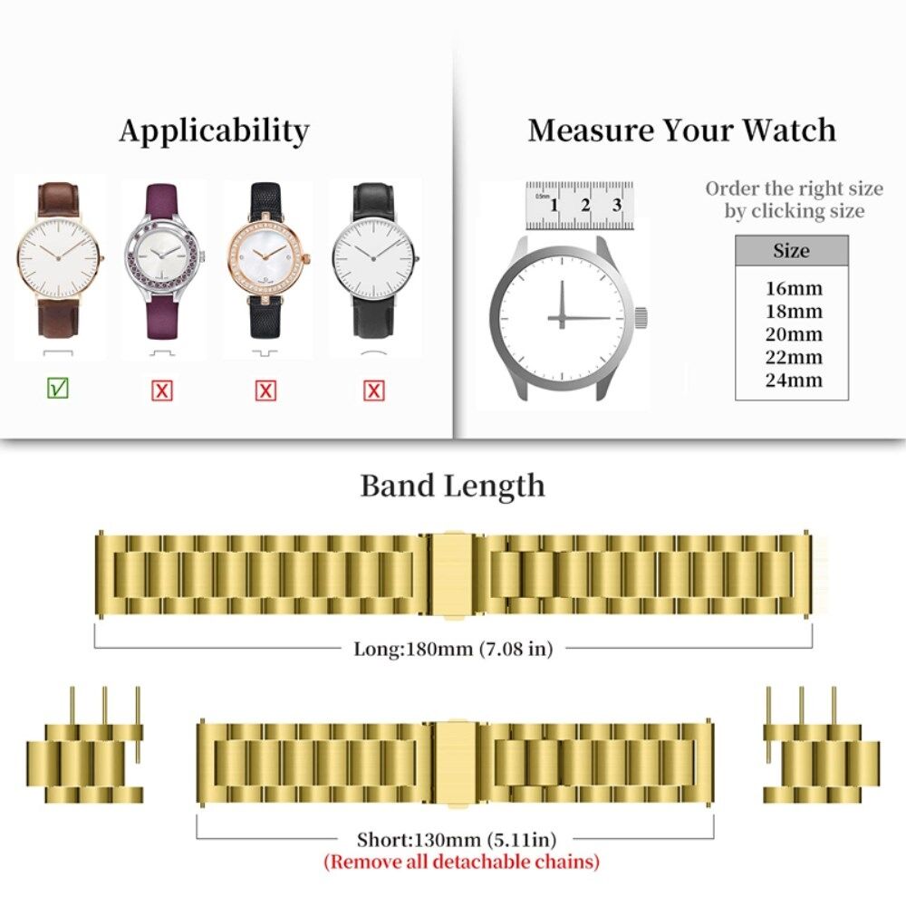 JLT For Samsung Watch4 Classic 46mm / 42mm / Garmin Venu 2 Plus 22mm Stainless Steel Watch Strap Three Beads Wrist Band with Folding Buckle - Gold