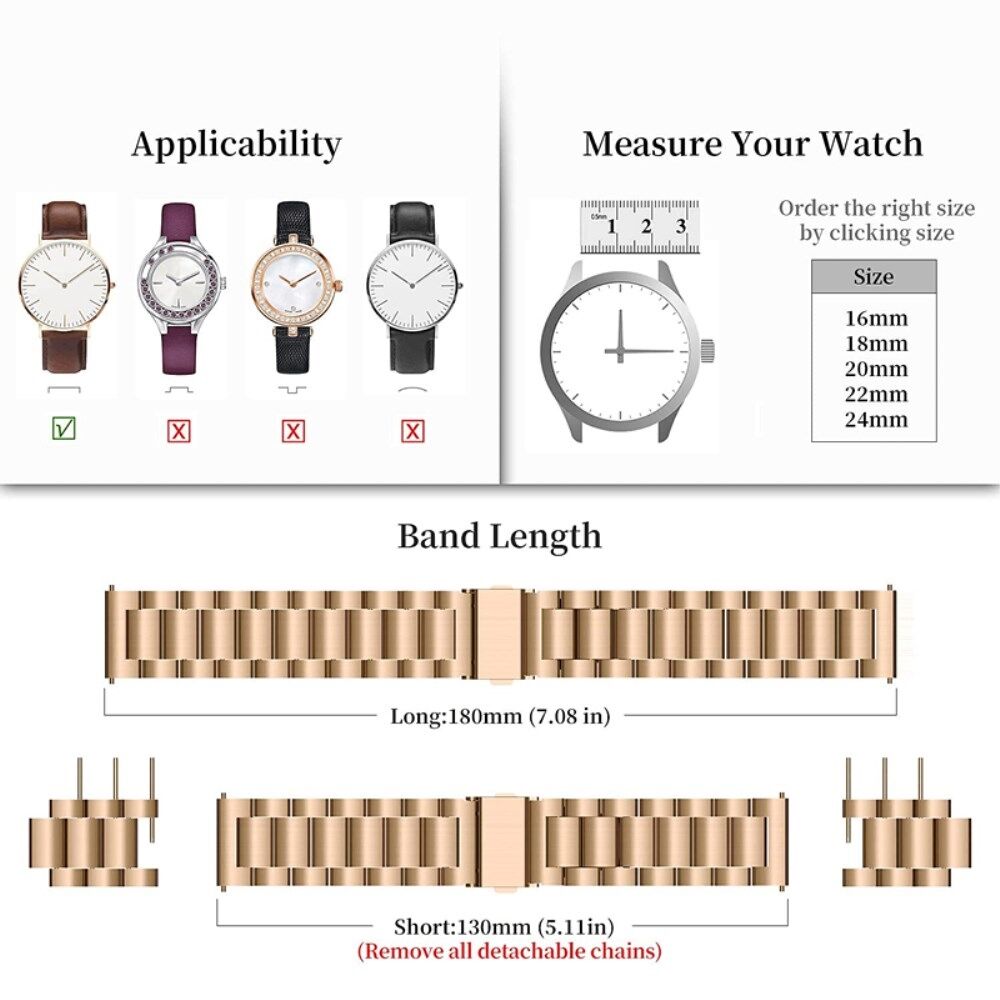 JLT For Samsung Watch4 Classic 42mm / 46mm / Garmin Venu 2 Plus 20mm Watch Band Three Beads Stainless Steel Replacement Strap - Rose Gold