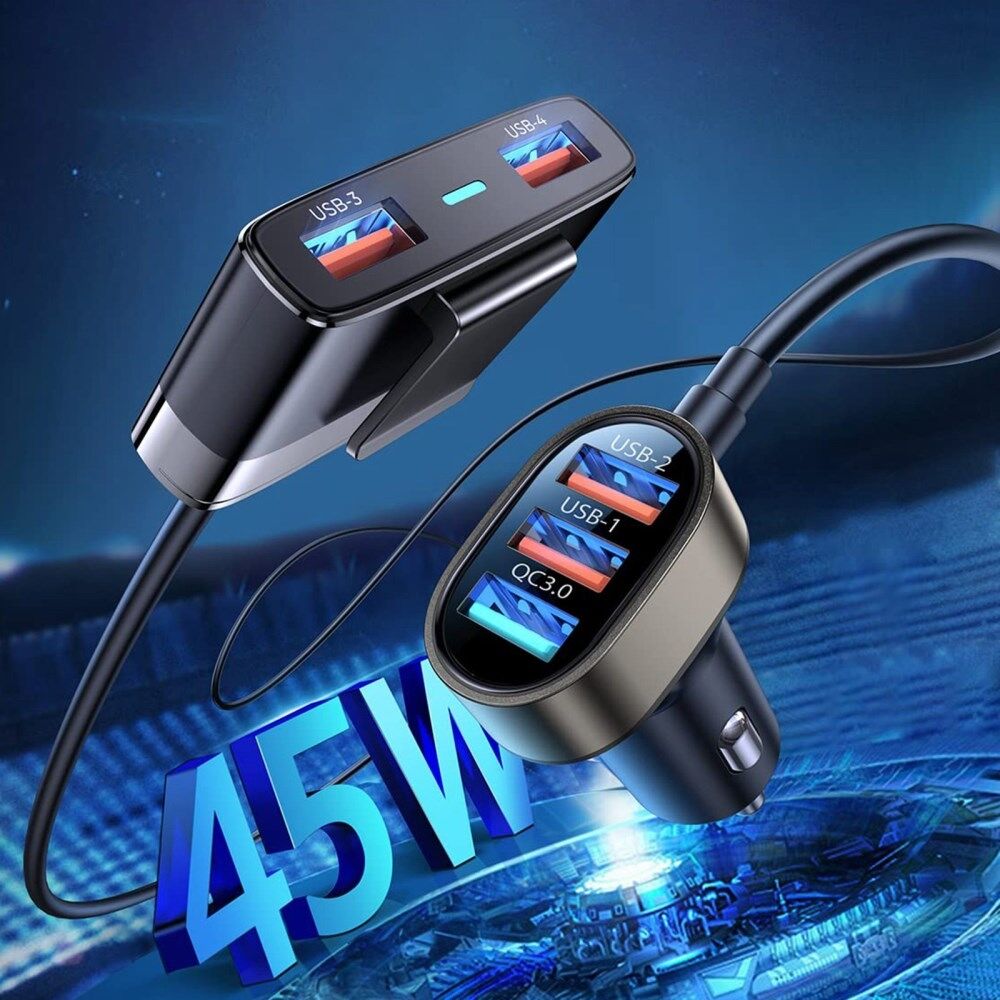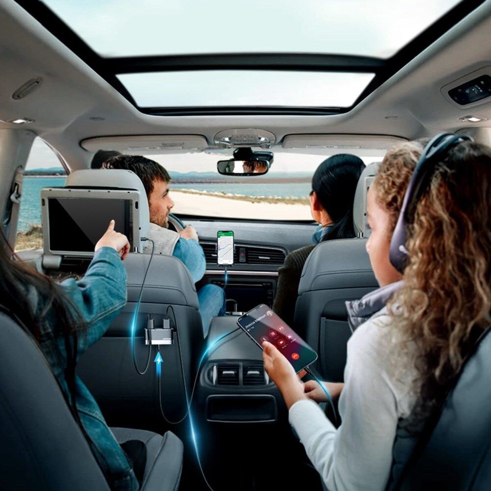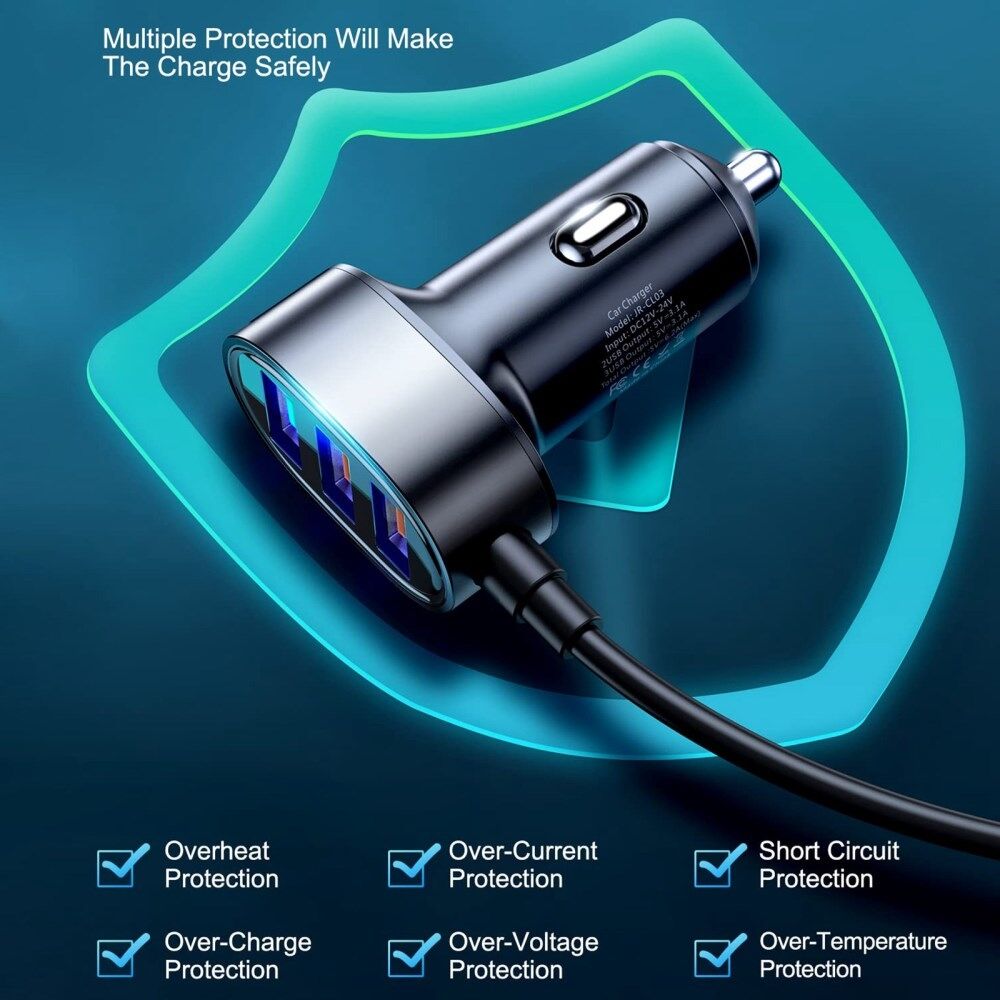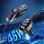• Front and Back Seats Charge Freely: This car charger has 5 port charging ports to settle the shortage of charging