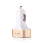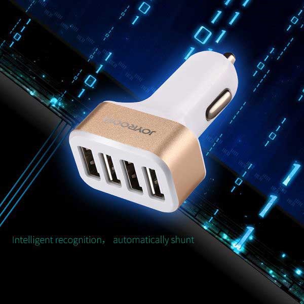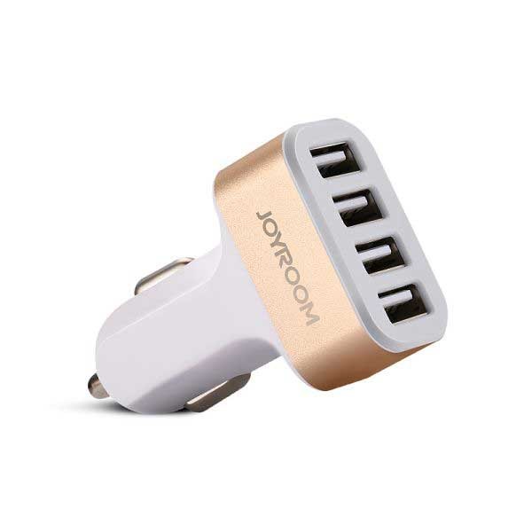 An extremely exclusive design in white with gold and a total of 4 USB ports, you get in this car charger from JOYROOM. The design is clean and stylish in aluminum. You plug it into the car's cigarette lighter and have power for your iPhone, iPad, iPod and most of your other devices that charge via USB. It has built-in safety circuits, and automatically recognizes the connected devices, and delivers the optimal power to the device.