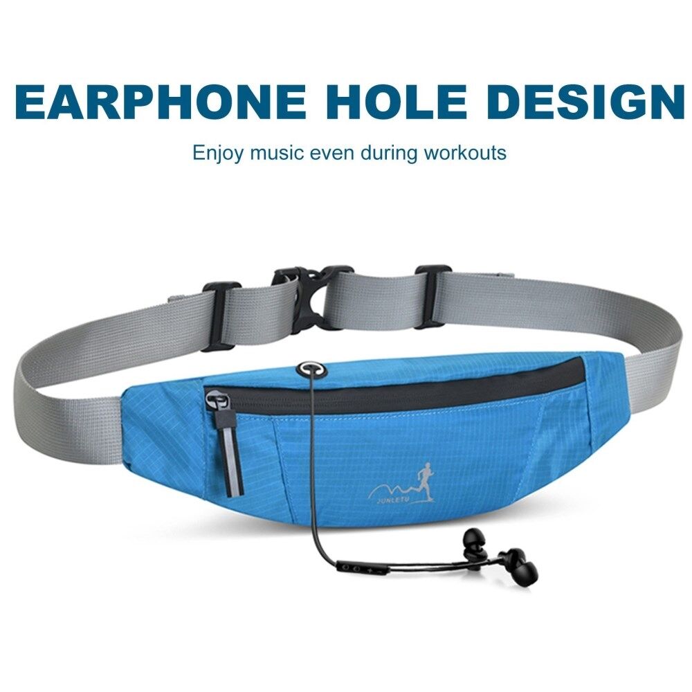 This waist pack is water-repellent and wear-resistant. It features a zippered pocket to secure your valuables, an earphone jack for listening to music, an adjustable belt for a customized fit, reflective strip for good visibility in low light. It is a great choice for outdoor sports like cycling, running, camping, hiking, jogging, fitness.