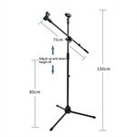K02 Collapsible Floor Tripod Microphone Stand with Double Mic Clips for Studio Recording / Live Streaming / Vlogging