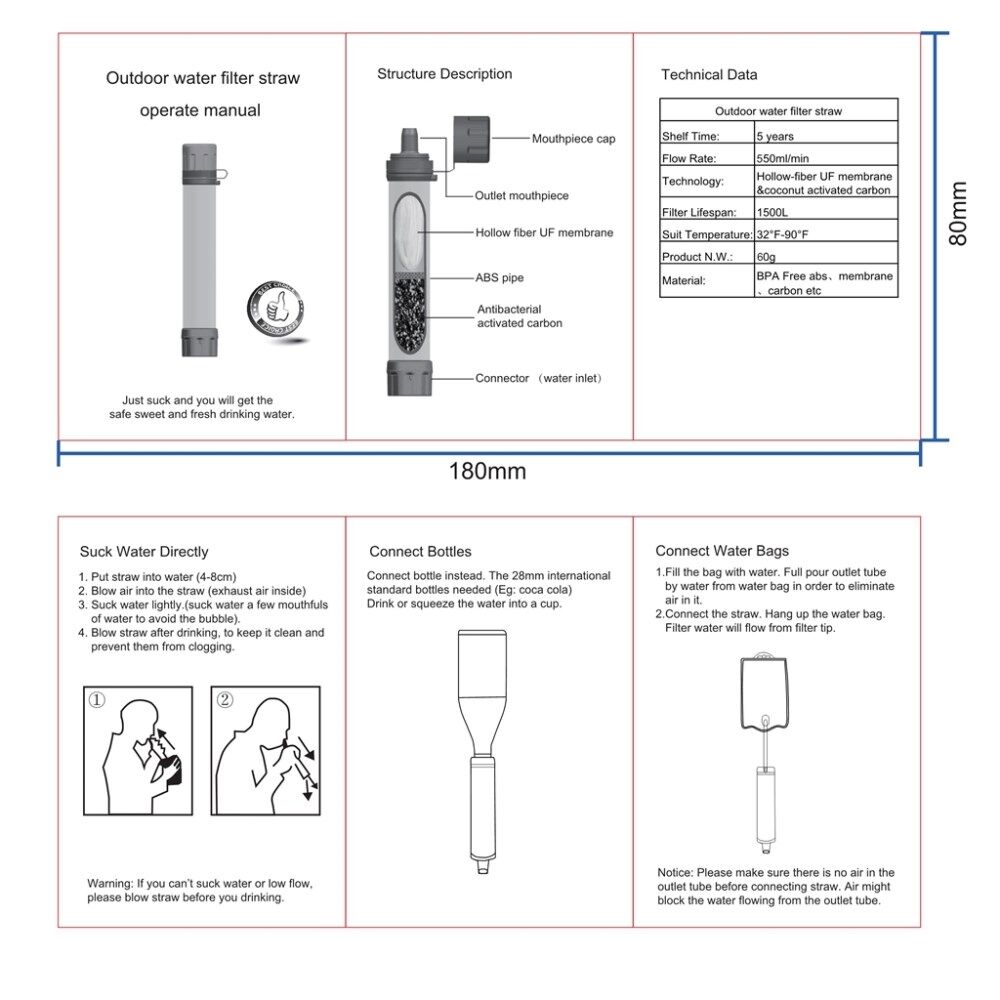 • Weighing only 2oz, easy to use and light filter straw, take up very little space in your backpack