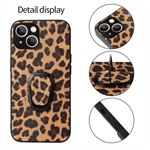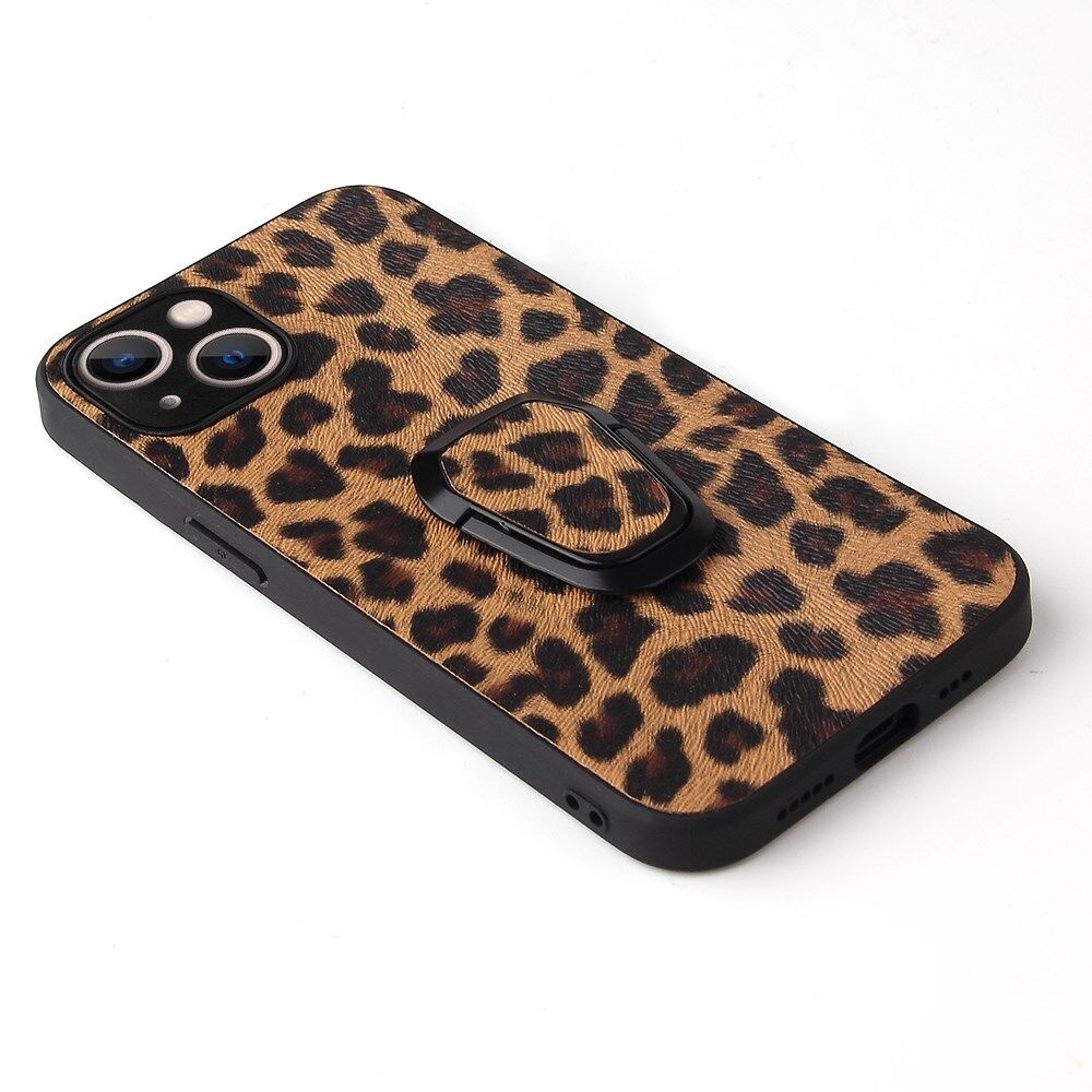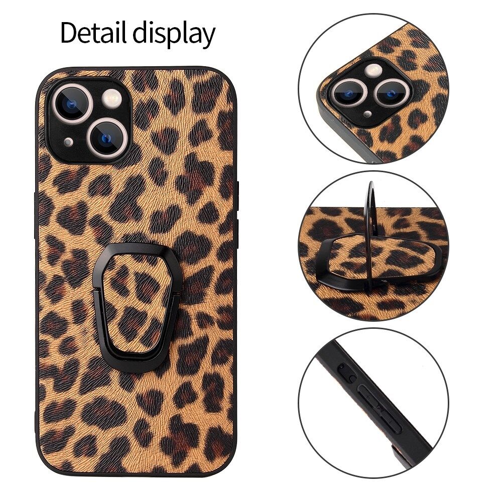 Kickstand Design PU Leather Coated Phone Case Shell with Built-in Metal Sheet for iPhone 13 6.1 inch - Leopard Texture/Dark Brown