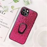 Kickstand Design PU Leather Coated Phone Case Shell with Built-in Metal Sheet for iPhone 13 6.1 inch - Glitter/Rose Red