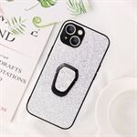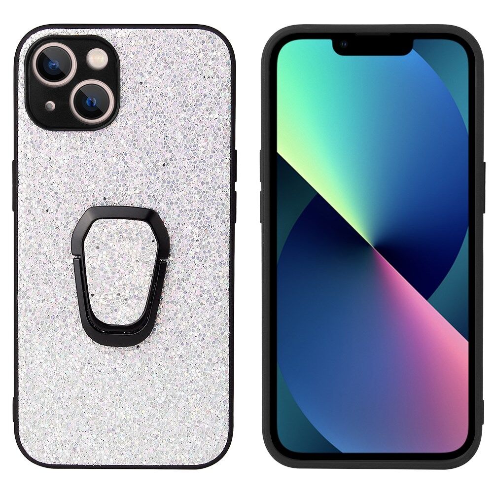 Kickstand Design PU Leather Coated Phone Case Shell with Built-in Metal Sheet for iPhone 13 6.1 inch - Glitter/Silver