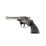 This capper pistol is 16 cm long and is made of plastic. This toy gun completes a cowboy outfit and guarantees hours of fun. The clapper revolver can fire 8 rounds per round. Clappers not included, can be ordered under item number 4699769.