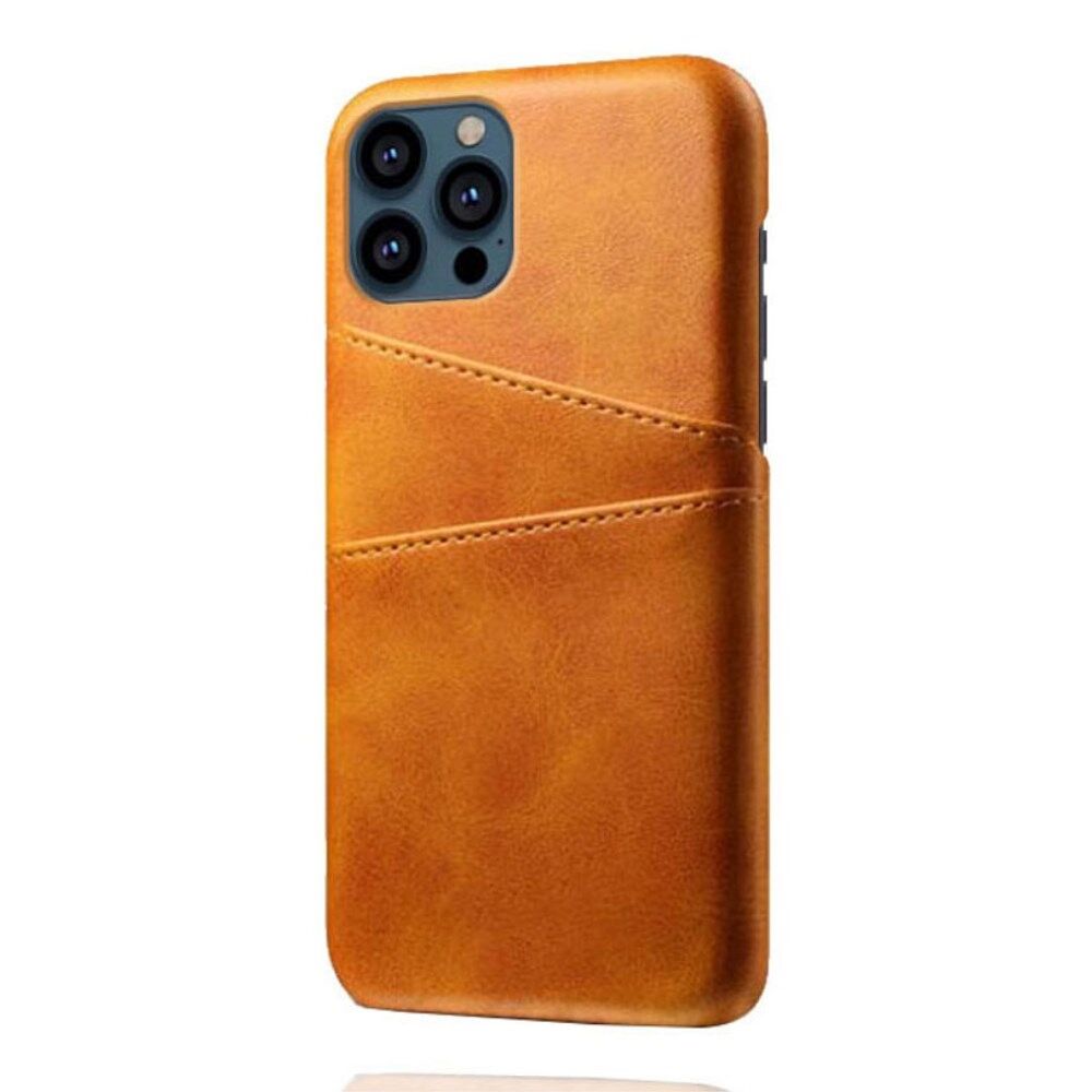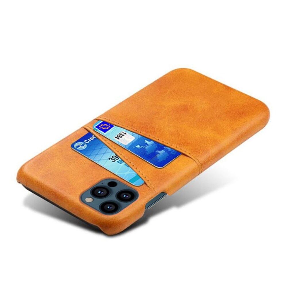 KSQ Double Card Slots Leather Coated Hard PC Phone Back Case Shell for iPhone 13 Pro 6.1 inch - Orange