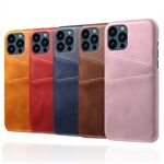 KSQ Double Card Slots Leather Coated Hard PC Phone Back Case Shell for iPhone 13 Pro 6.1 inch