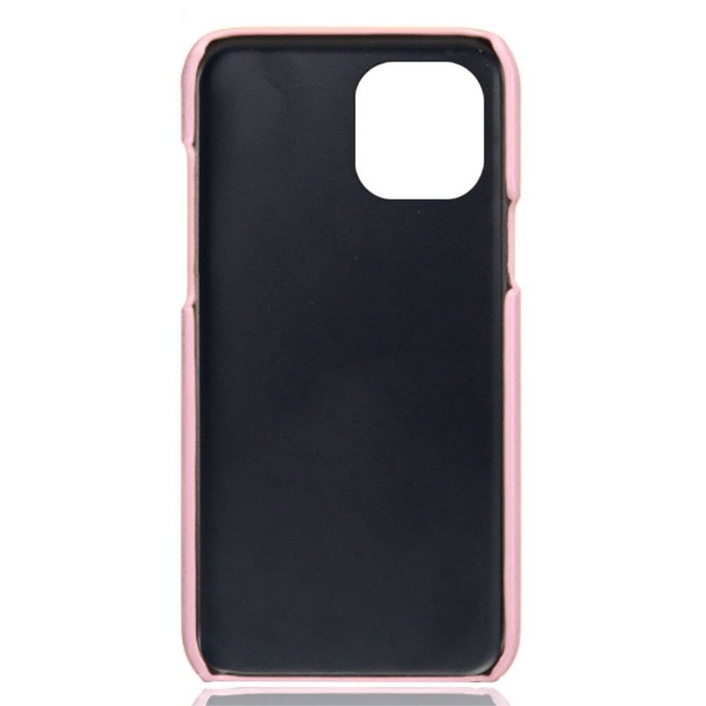 KSQ Double Card Slots Leather Coated Hard PC Phone Back Case Shell for iPhone 13 Pro 6.1 inch - Rose Gold