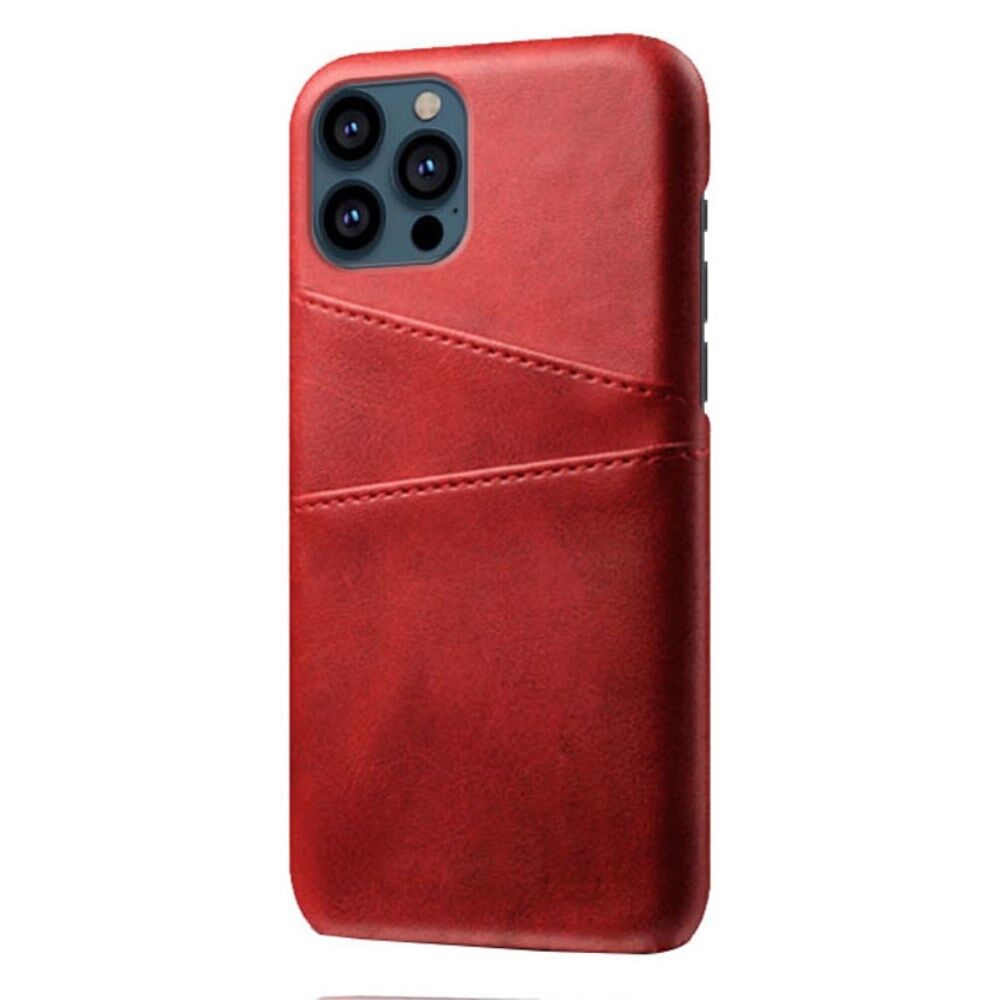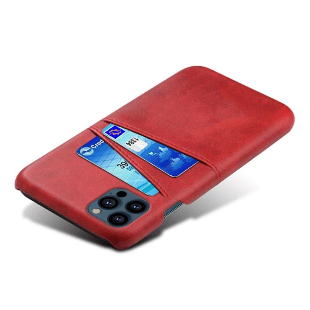 KSQ Double Card Slots Leather Coated Hard PC Phone Back Case Shell for iPhone 13 Pro 6.1 inch - Red