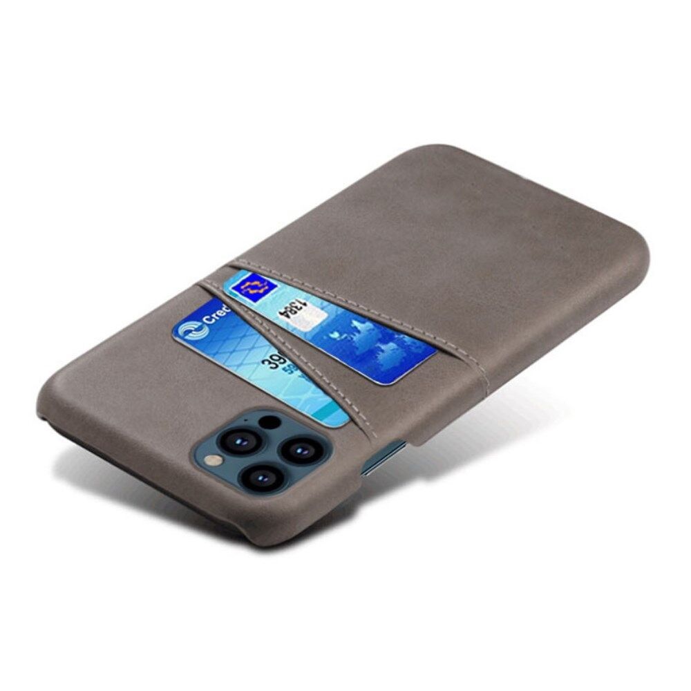 KSQ Double Card Slots Leather Coated Hard PC Phone Back Case Shell for iPhone 13 Pro 6.1 inch - Grey