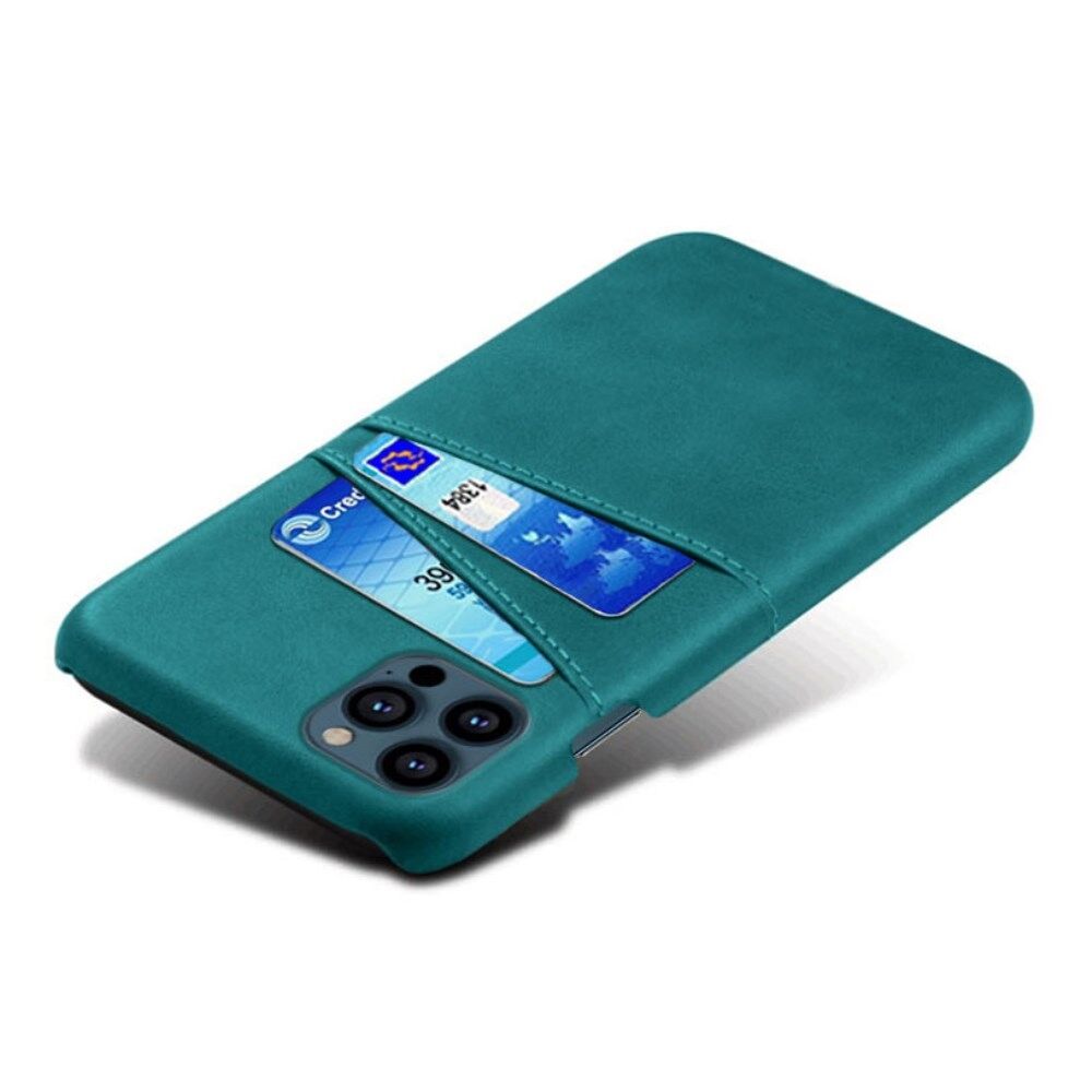 KSQ Double Card Slots Leather Coated Hard PC Phone Back Case Shell for iPhone 13 Pro 6.1 inch - Green