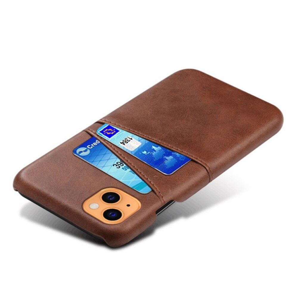 KSQ PU Leather + PC Combo Hard Case with Dual Card Slots for iPhone 13 mini 5.4 inch - Brown