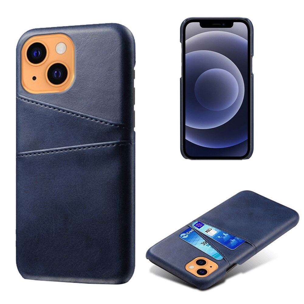 KSQ Well-Protected PU Leather Coated Hard PC Case with Dual Card Slots for iPhone 13 6.1 inch - Blue