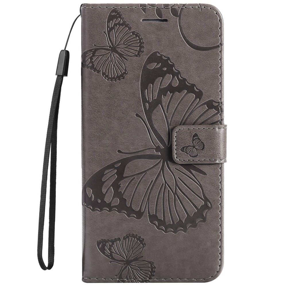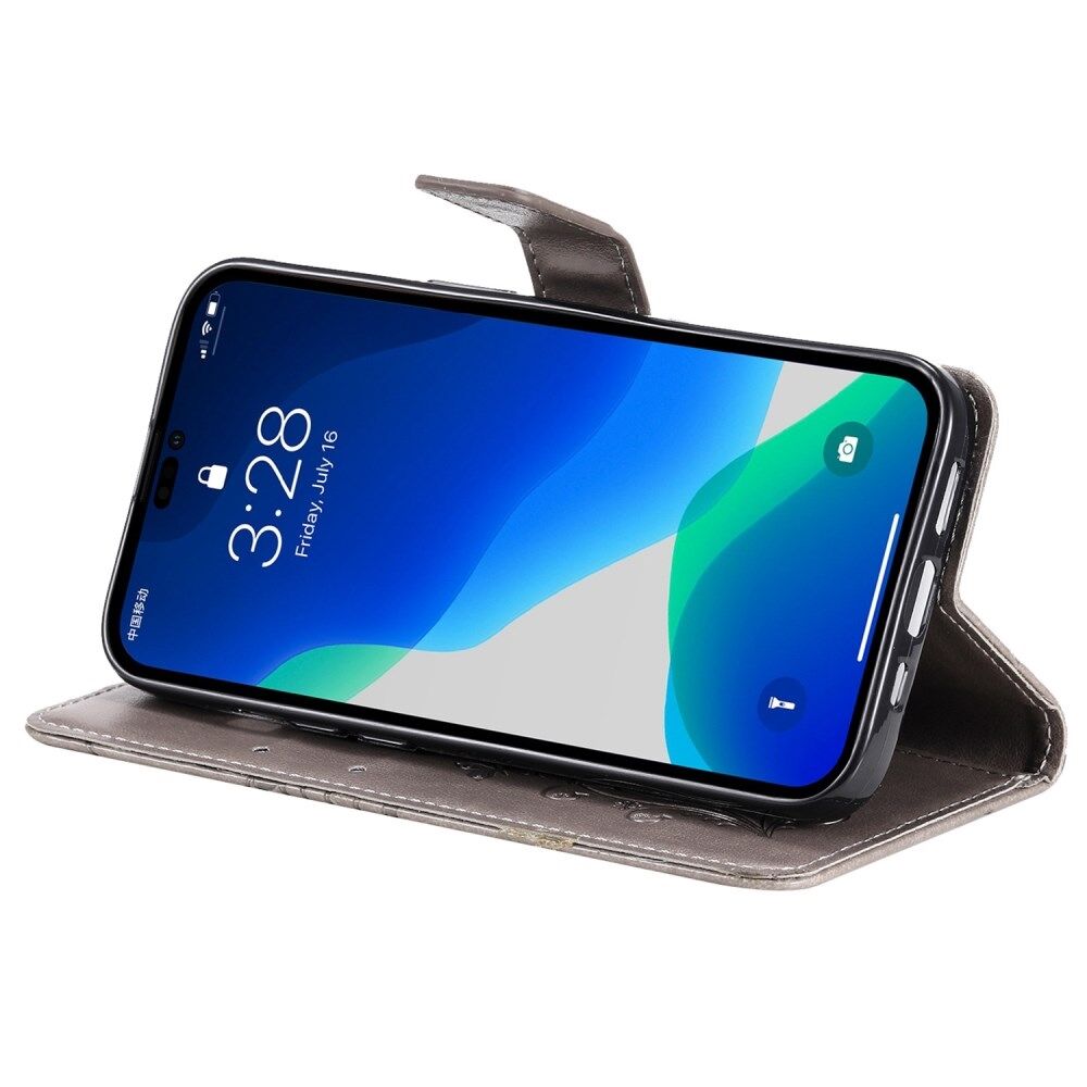 KT Leather Series-2 for iPhone 14 Pro 6.1 inch Shockproof Butterfly Imprinted PU Leather Case Phone Wallet Stand Cover - Grey