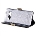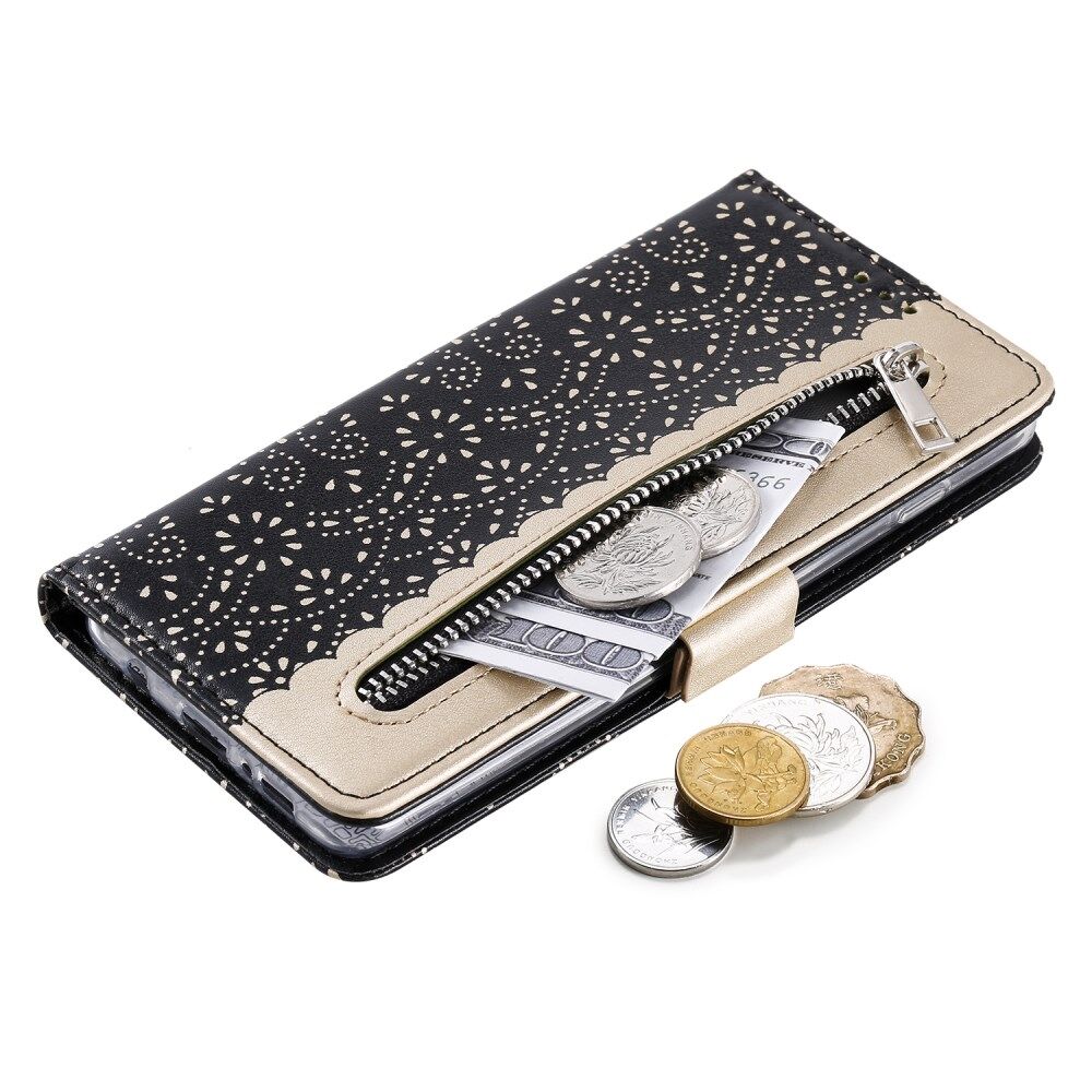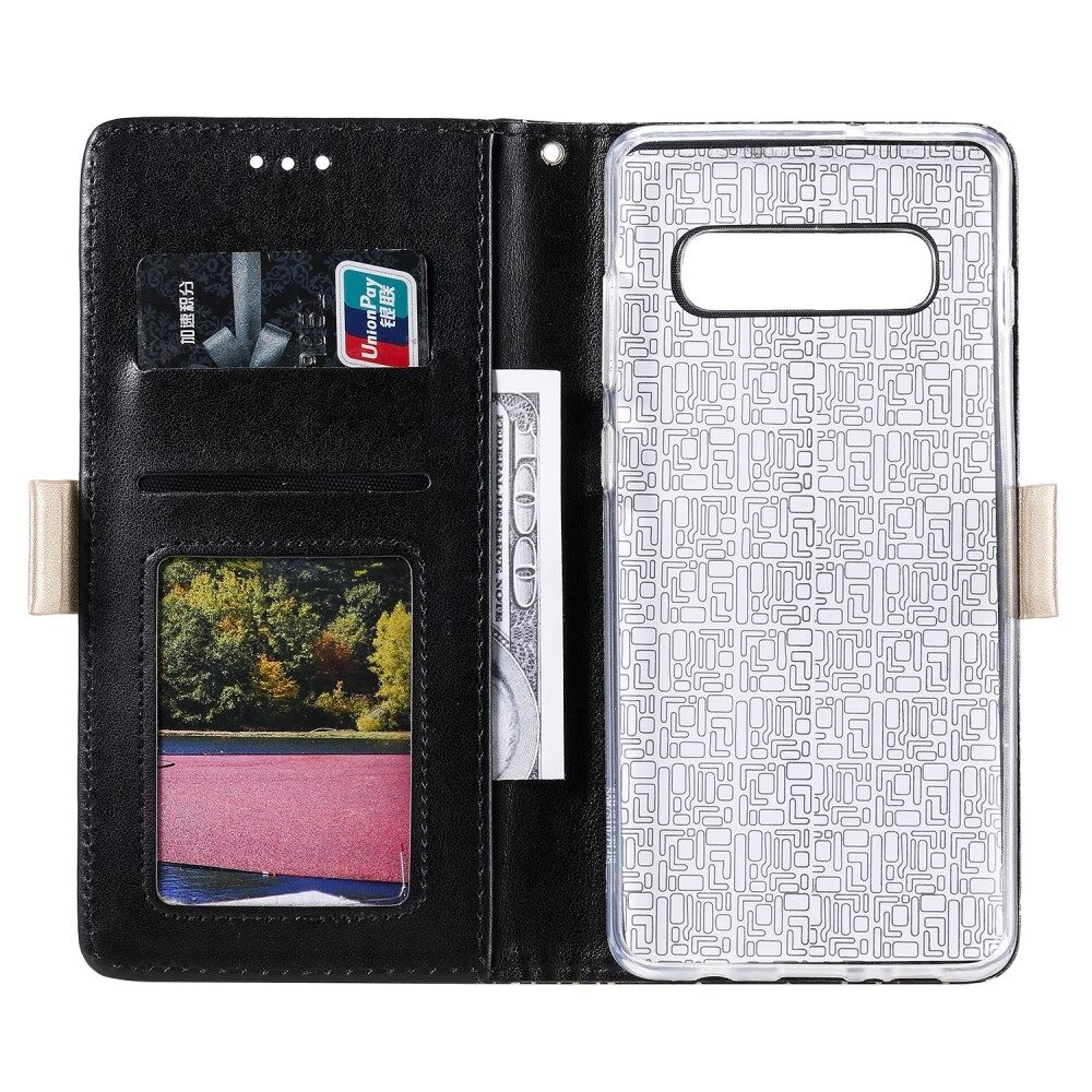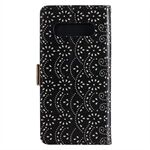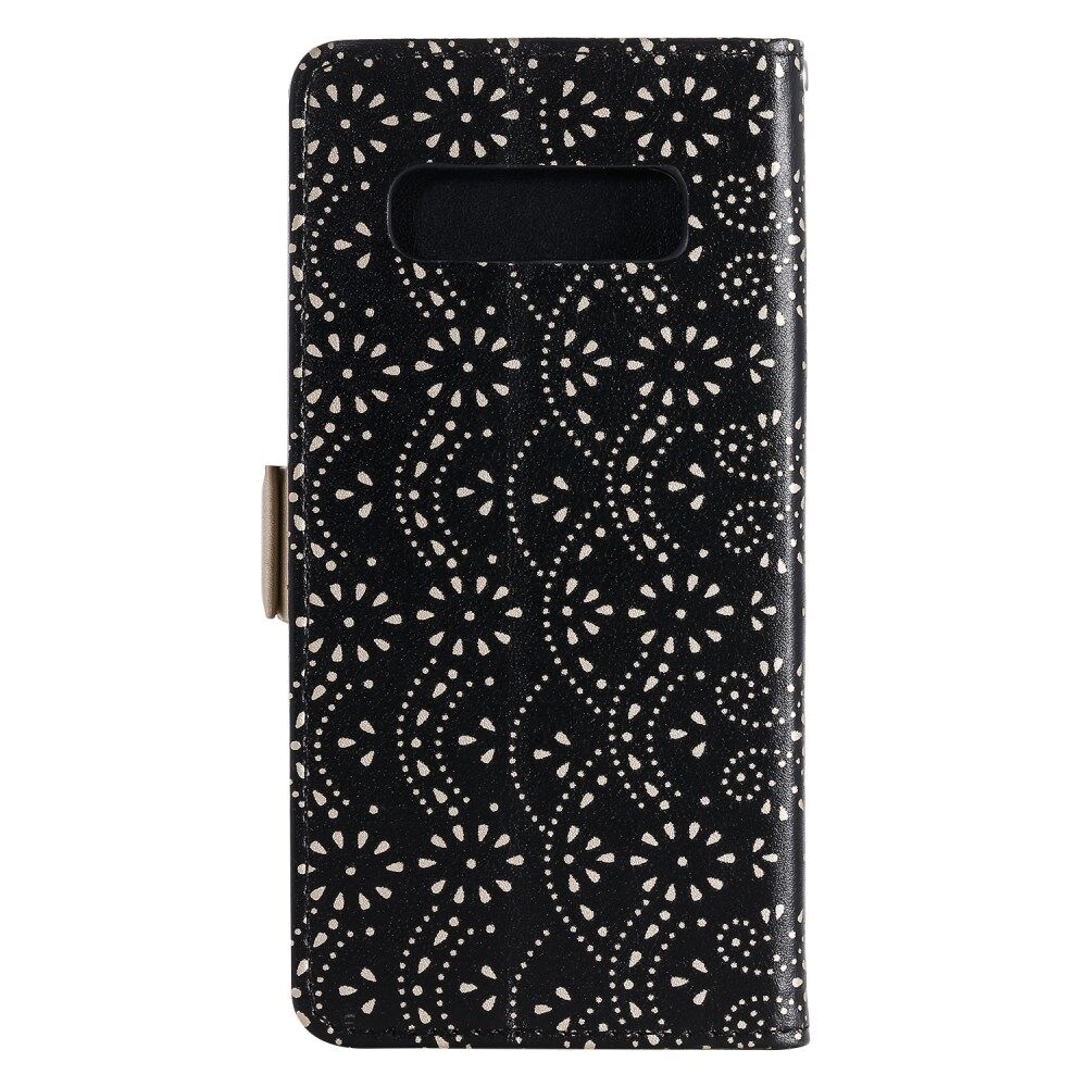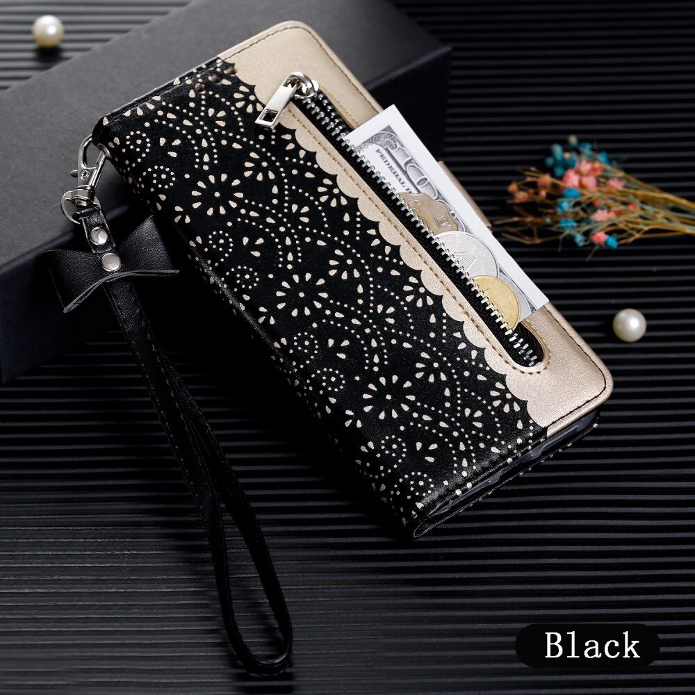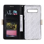 Lace Flower Pattern Zipper Pocket Leather Wallet Case with Bow Lanyard for Samsung Galaxy S10 Plus - Black