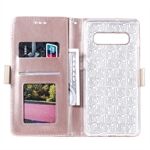 Lace Flower Pattern Zipper Pocket Leather Wallet Case with Bow Lanyard for Samsung Galaxy S10 Plus - Pink