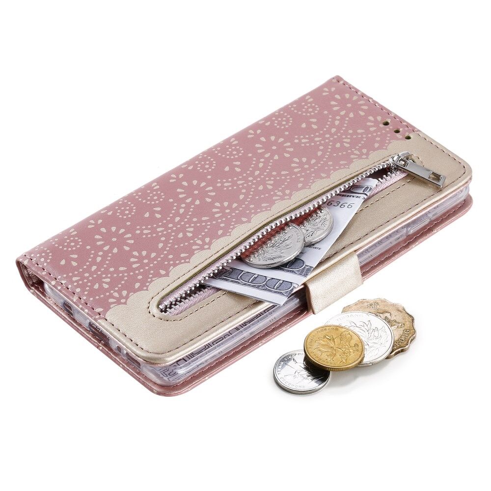 Lace Flower Pattern Zipper Pocket Leather Wallet Case with Bow Lanyard for Samsung Galaxy S10 Plus