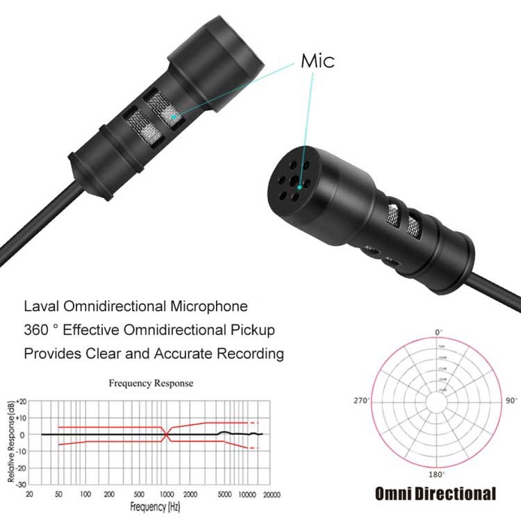 Lapel Lavalier Microphone for Smartphone, Camera and PC / iOS & Android
