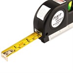 The laser light beam reaches 6 meters in a straight line and the 250 cm long measuring tape can be locked to the desired length. You can project with horizontal or vertical laser light beam and three integrated spirit levels that allow you to level the light beam.