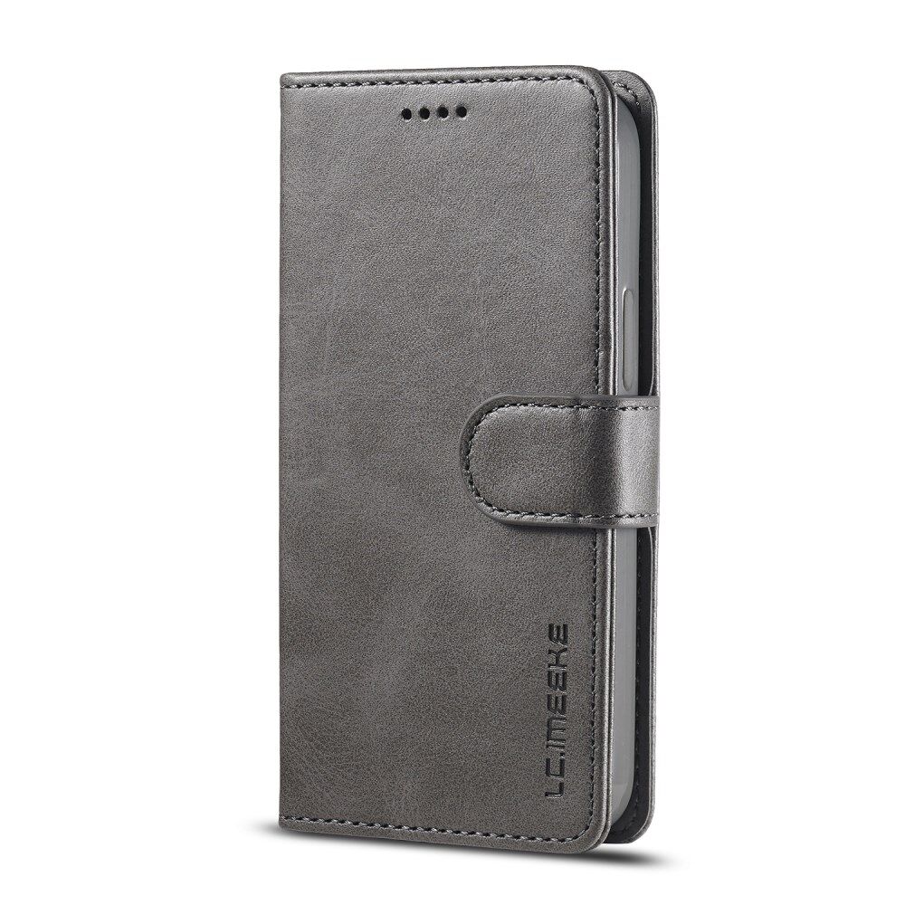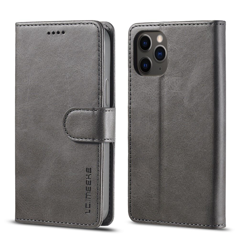 LC.IMEEKE Card Holder Leather Wallet Stand Cover Phone Case for iPhone 12 Pro 6.1 inch - Grey