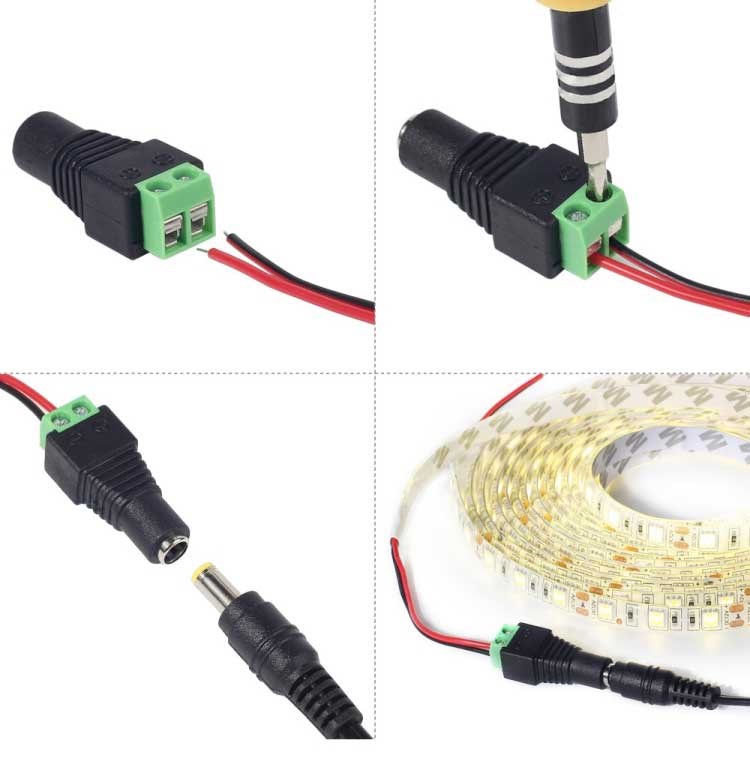 The band is connected with an EU plug and adapter. Can adhere to smooth surfaces.